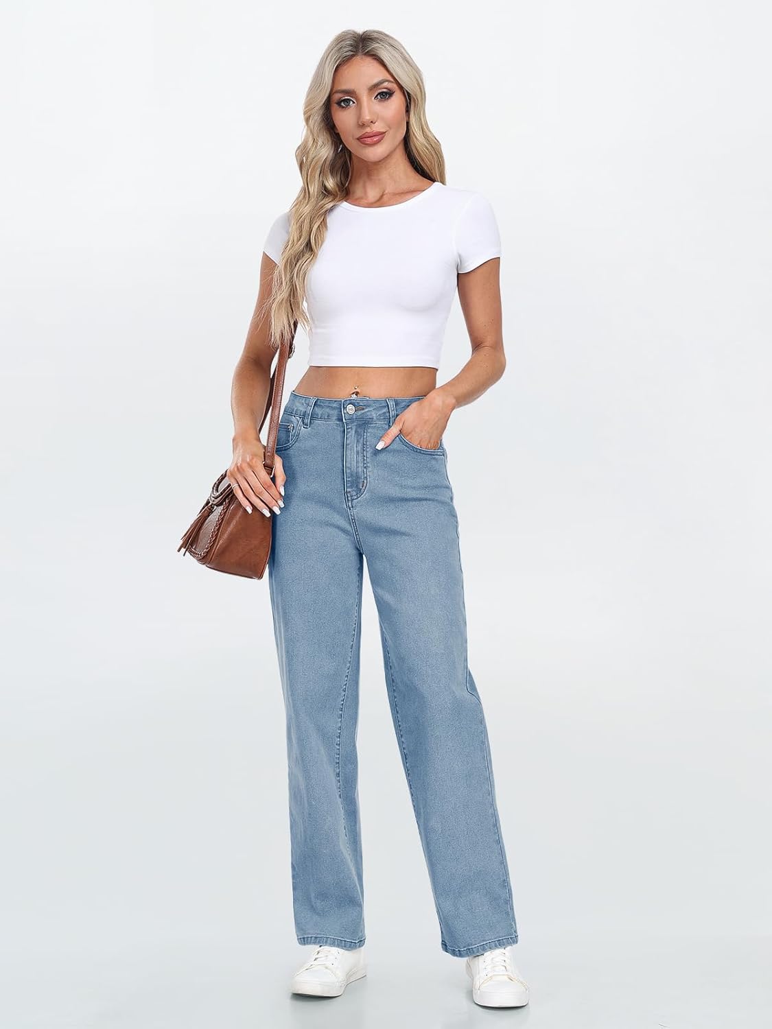 AUTOMET Women High Waisted Wide Leg Jeans Straight Leg Tummy Control Trendy Boyfriend Denim Pants 2024