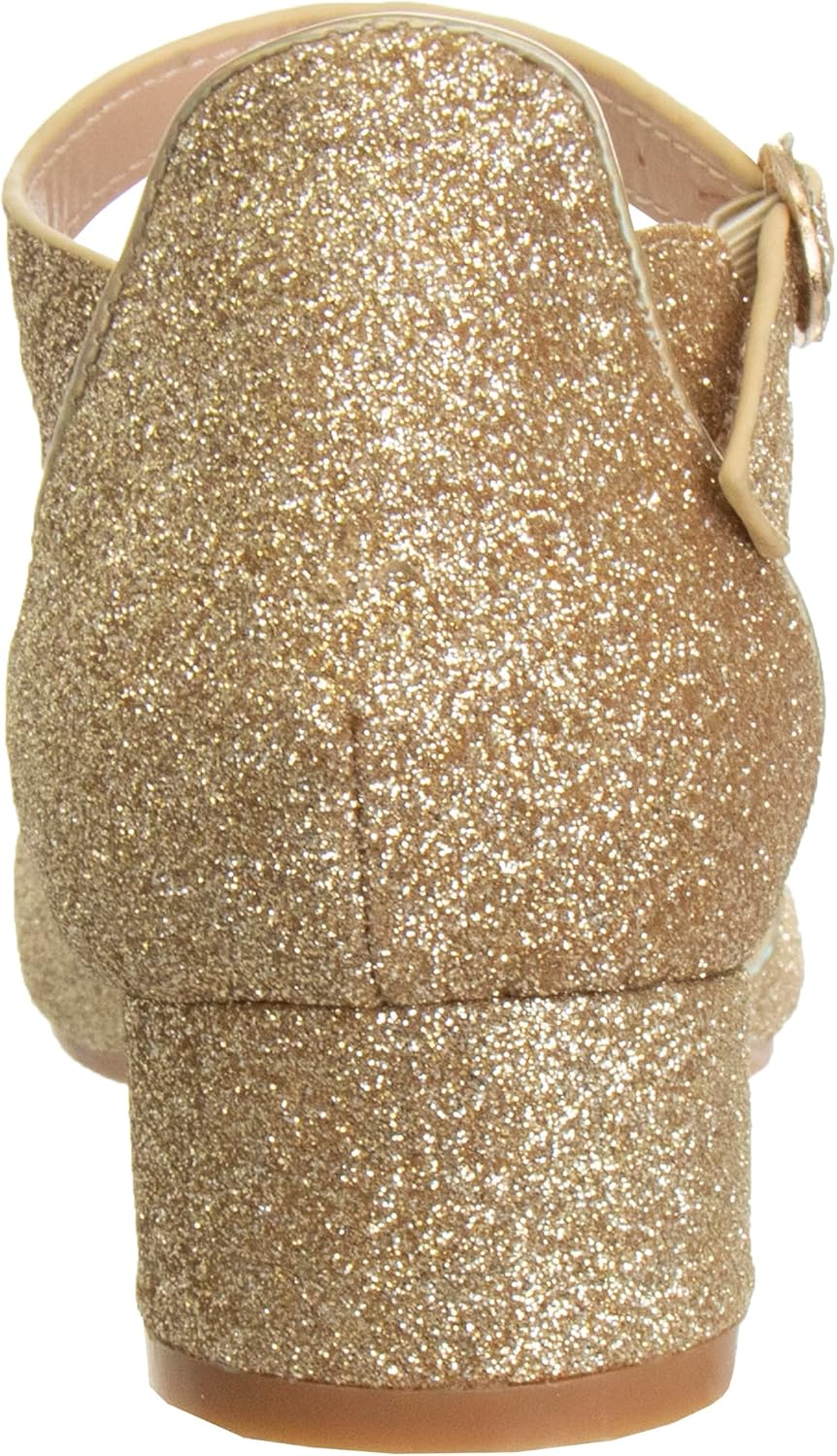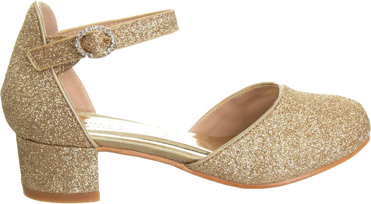 Badgley Mischka Girls Dress Block Medium Heel Party Pumps – Closed Toe Ankle Strap High Heels for Girl – Black/Silver/Champagne/Rose Gold (Sizes 11-13 Little Kid/Sizes 1-5 Big Kid)