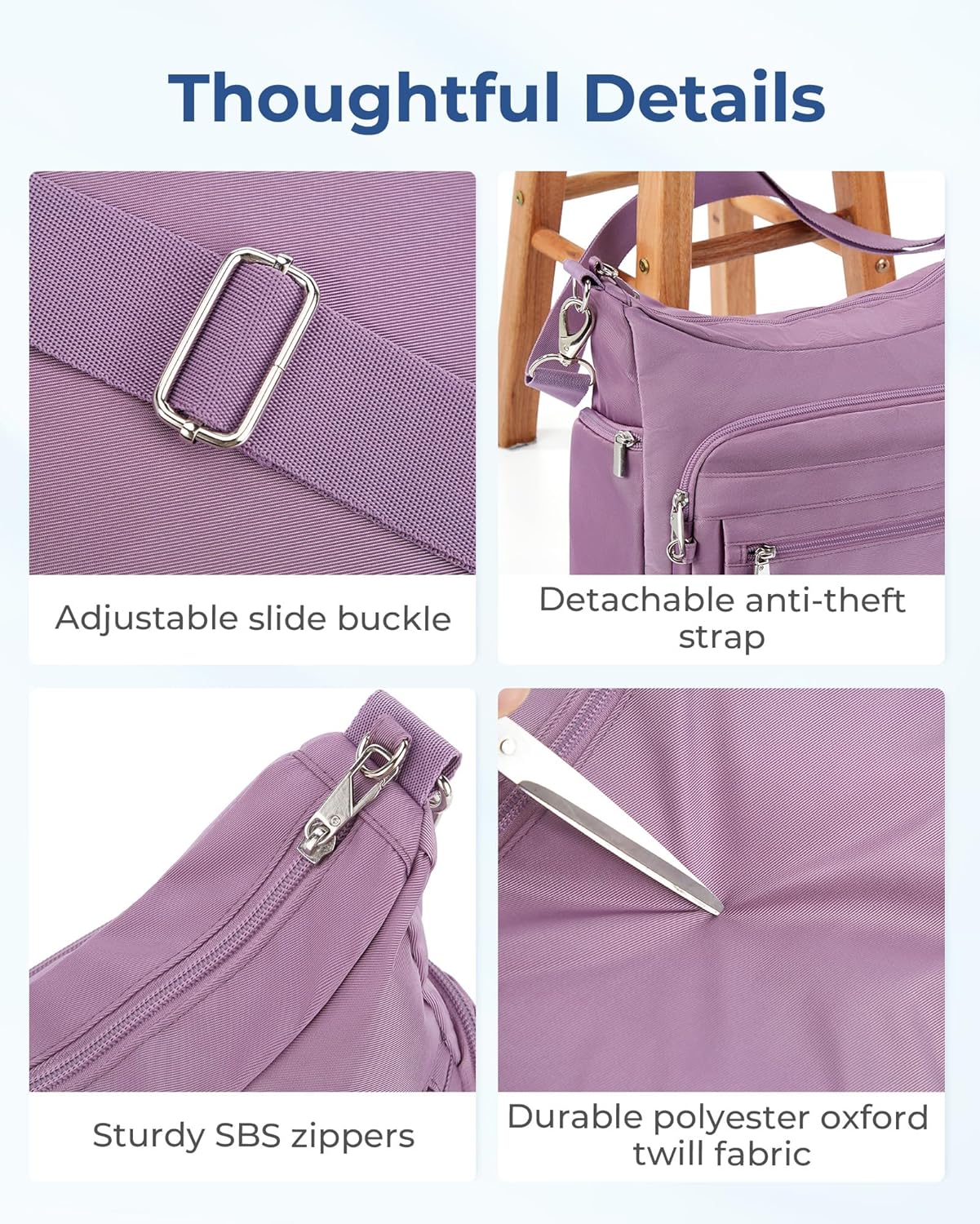 Customers like the handbag for its well-placed, roomy pockets and multiple compartments. They also appreciate the quality, design, and weight. Customers like that it is lightweight and has an adjustable strap. They like that the handicap placard fits nicely in the pocket. Customers also like the value. However, some customers are disappointed with the zipper and durability.