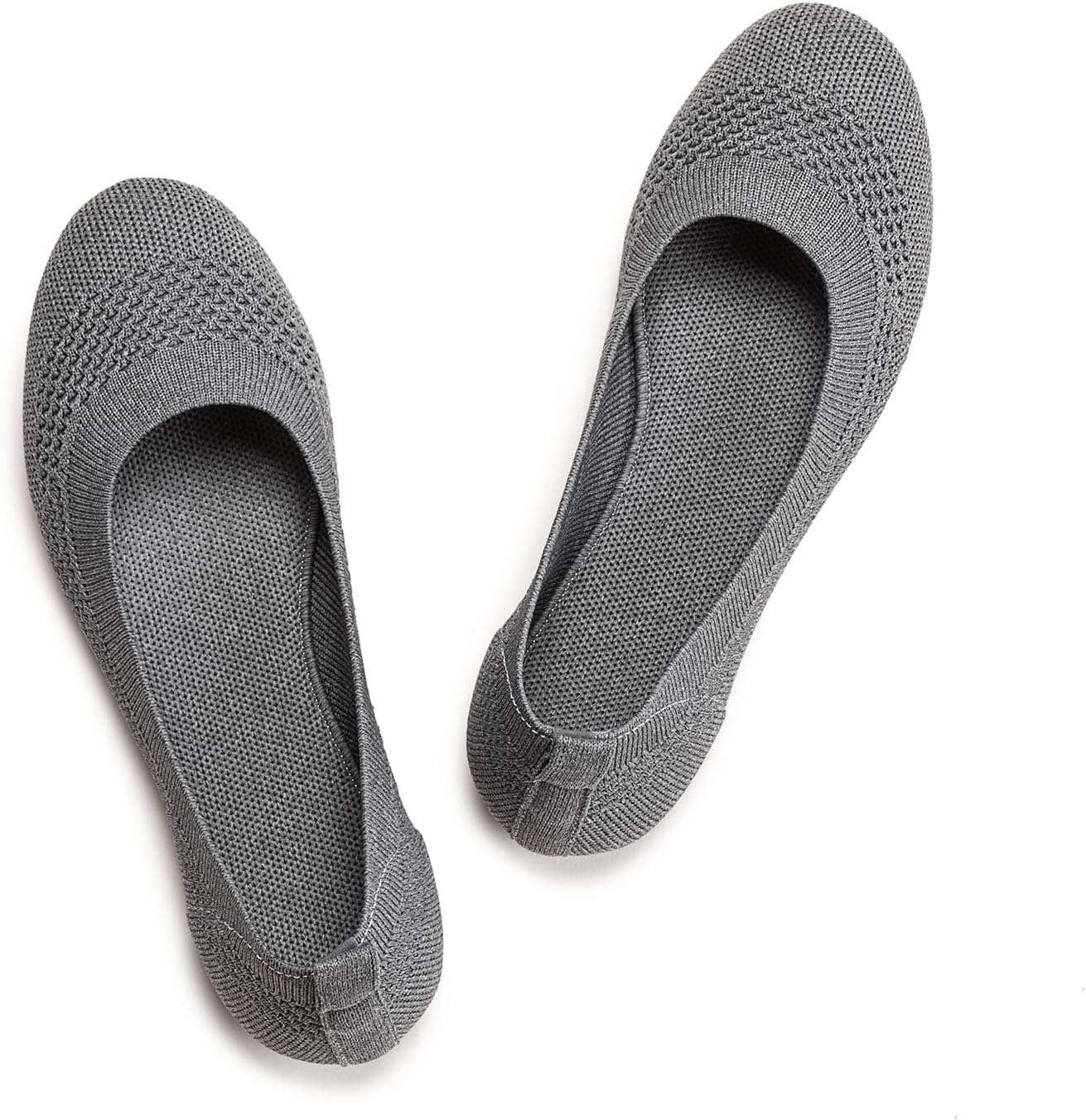 Ballet Flats for Women Soft Slip On Flat Shoes Knit Round Toe Work Flat Mesh Woman Walking Shoes Comfortable Casual