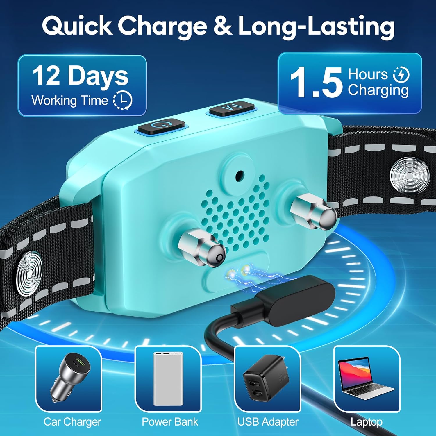 【Rechargeable】Dog Bark collar for small dogs can be recharged by a phone adapter and USB outlet of the PC/power bank/car, charging in 2 hours and can last up to 12 days