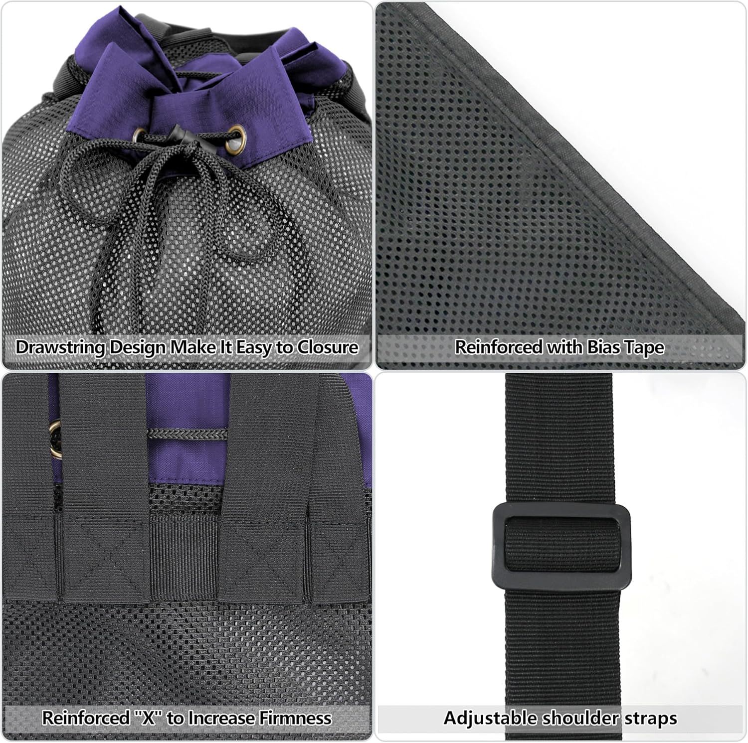 Adjustable Strap & Drawstring Closure