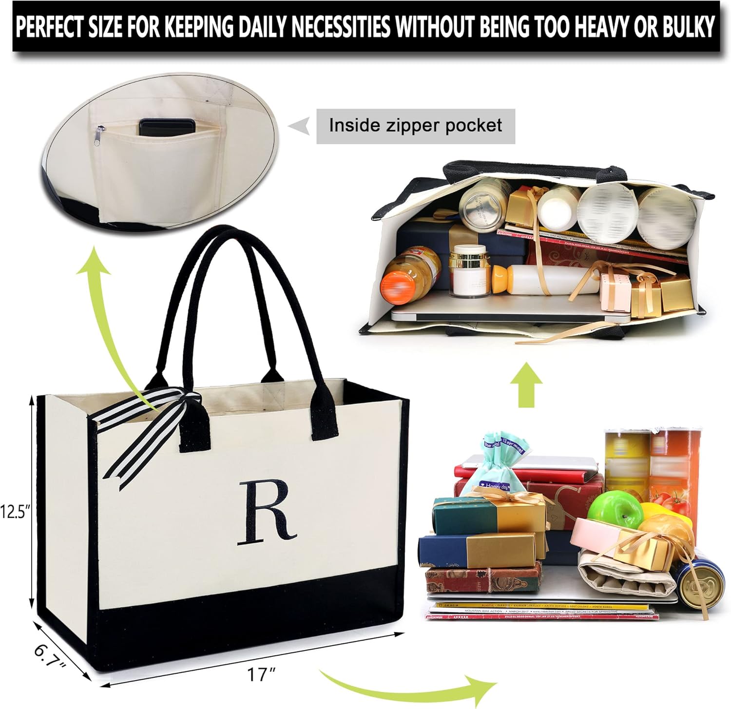 BeeGreen Thank You Gifts Cool Gifts for Women over 50 Moms Fun Gifts for Her Bride To Be Personalized large Canvas Tote Bag for Women Embroidery Monogrammed Gifts for Ladies Hostess R