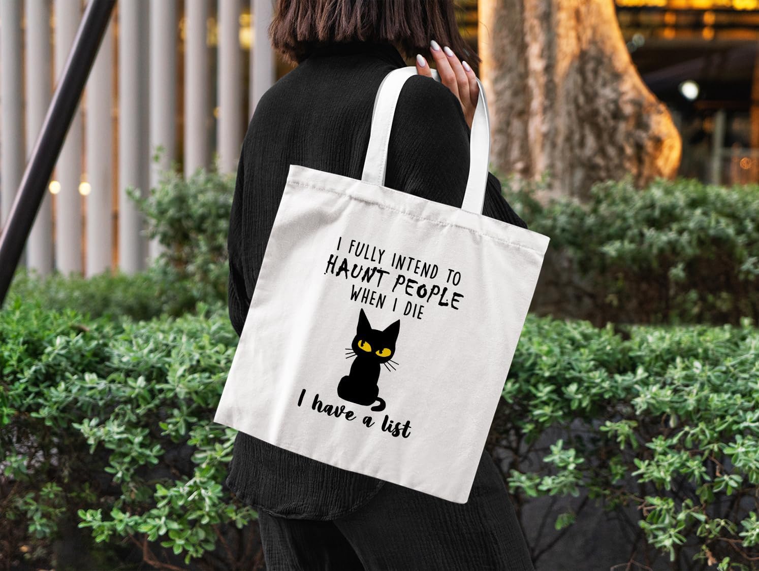 Black Cat Beach Bag, Canvas Tote Bag for Women, Funny Cute Cat, I Have a List Birthdays Gift for Women Teen Girl Friend, Reusable Grocery Shopping Bag Cat Gift Bag, Cat lover gifts for Women