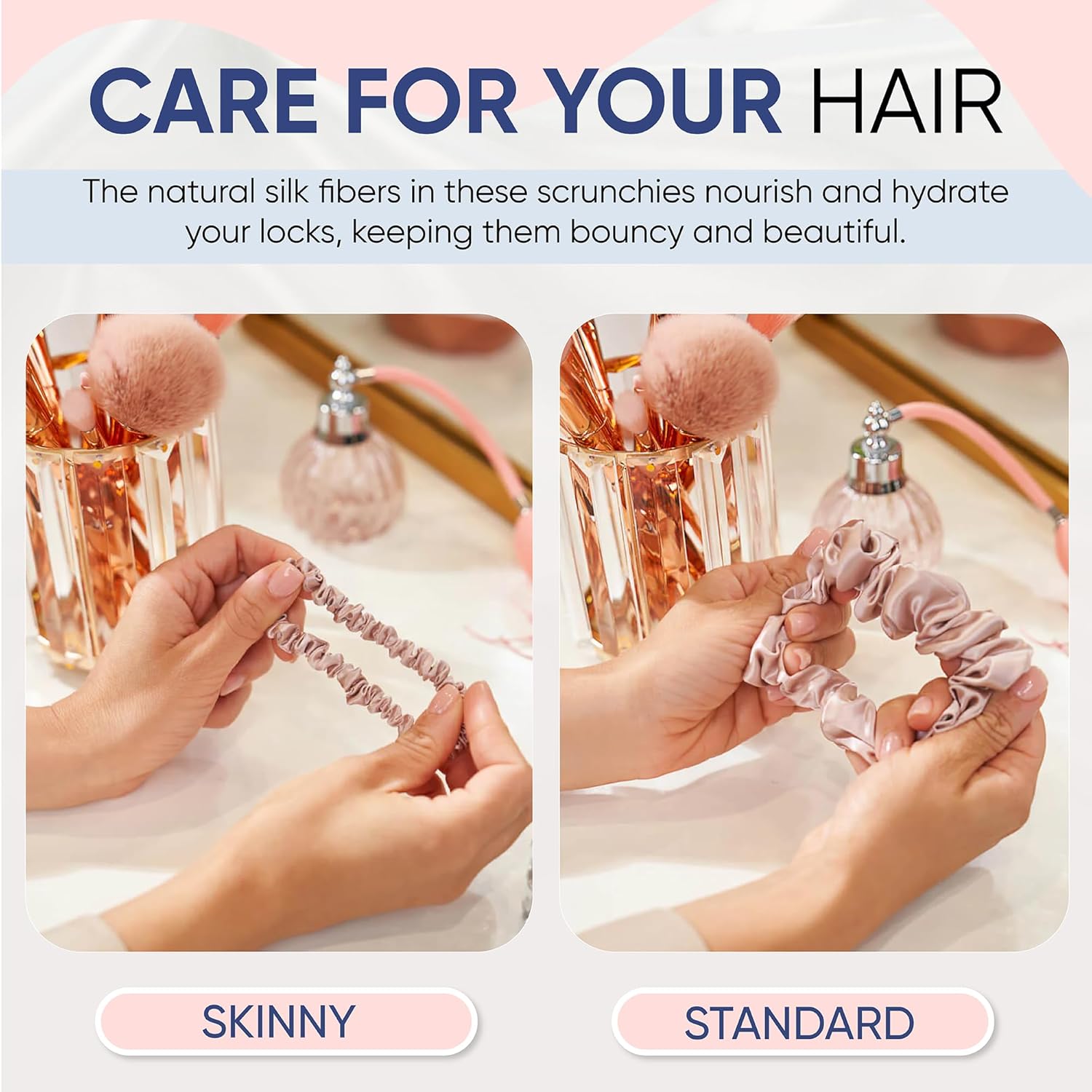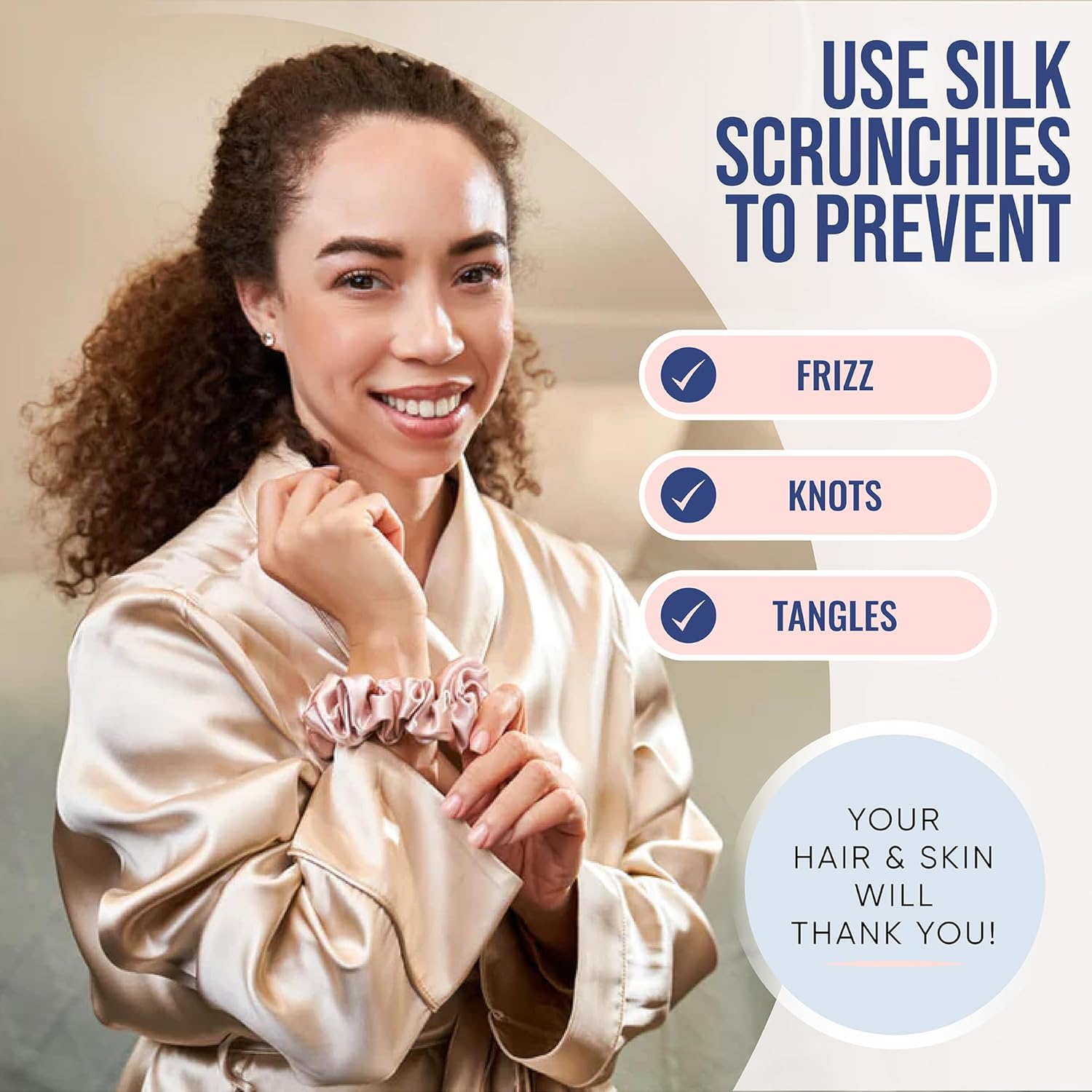 Hair Protection: Designed to prevent breakage and tangling, our silk scrunchies for hair sleep reduce friction while you rest. Ideal for maintaining healthy, strong hair, they help keep curls smooth and straight styles pristine without creasing.