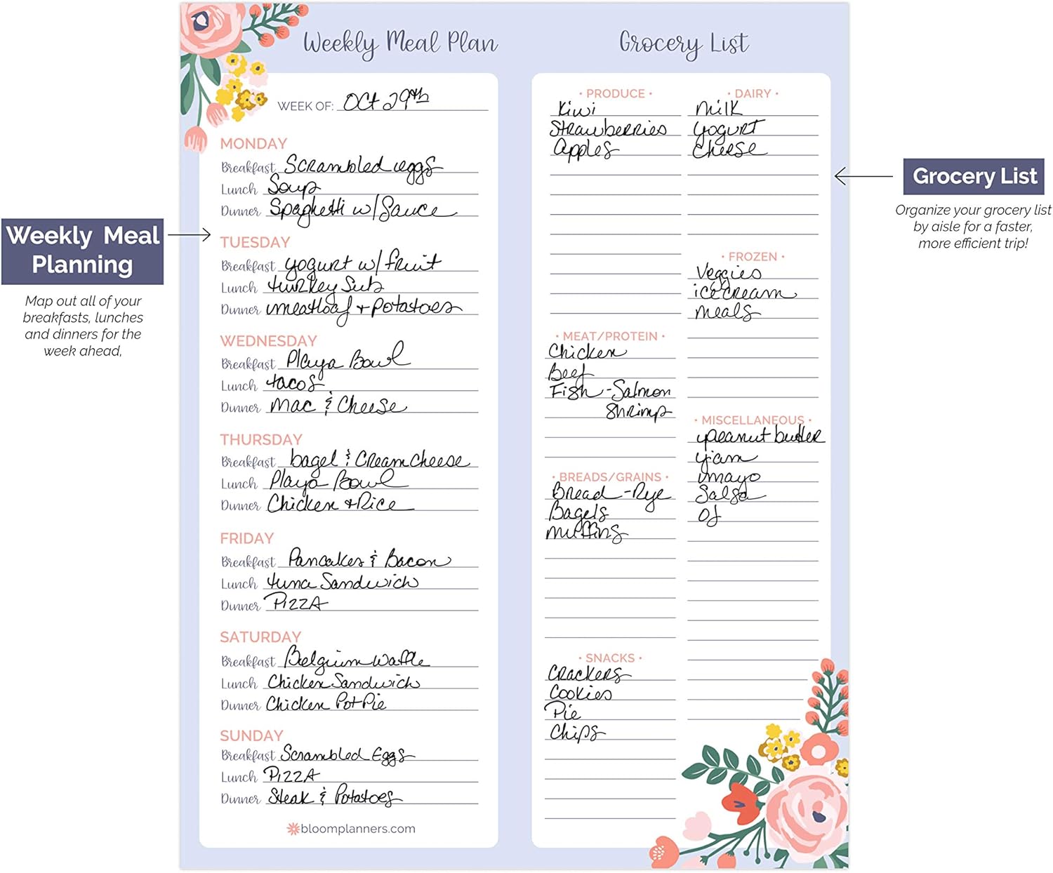 bloom’s Meal Planning Pad with Magnets is the perfect tool to streamline your weekly meal preparations and make grocery shopping a breeze. No more forgetting essential ingredients or doubling back for items you missed – this pad keeps you organized from the planning stage to the shopping cart.