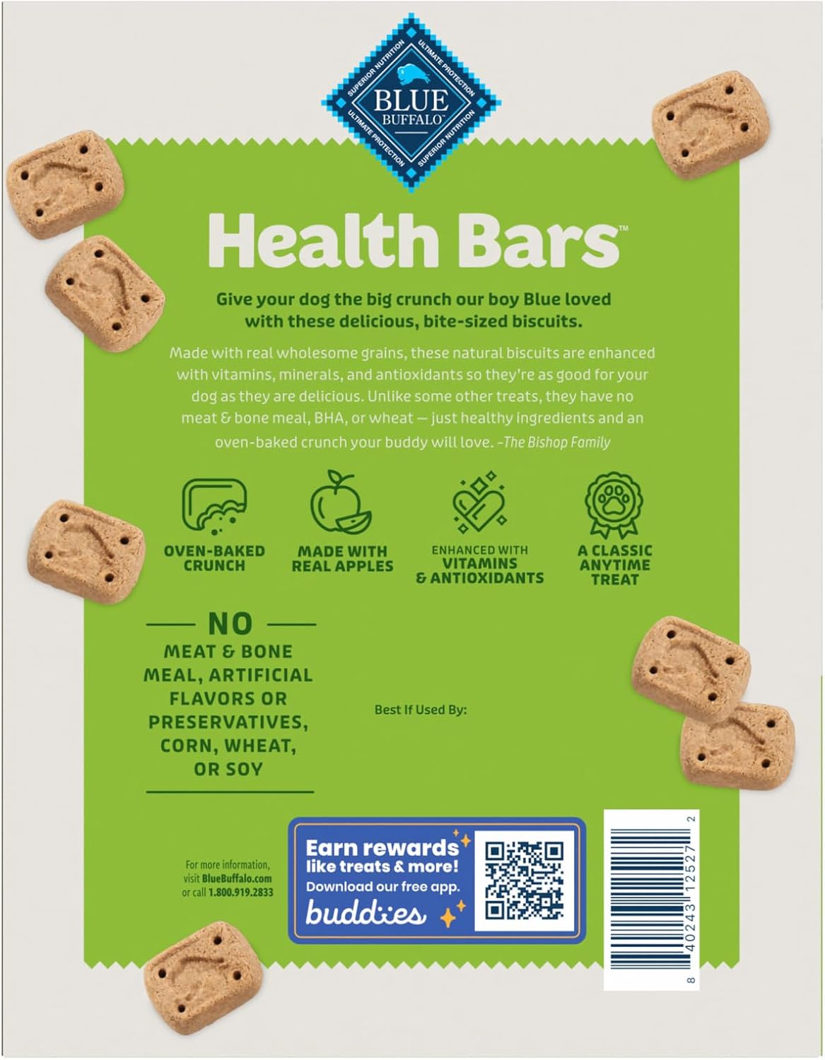 Blue Buffalo Mini Health Bars Crunchy Dog Biscuits, Oven-Baked With Natural Ingredients, Apples & Yogurt, 2-lb. Box