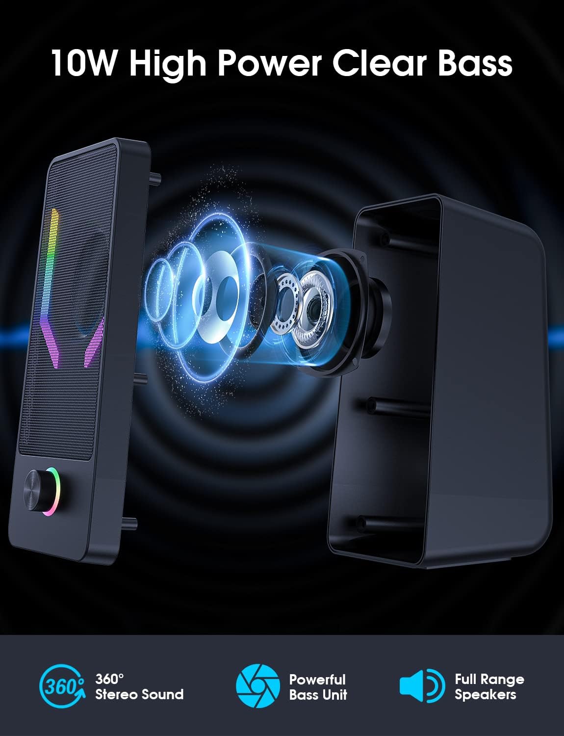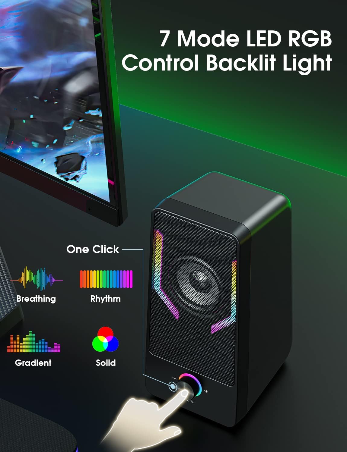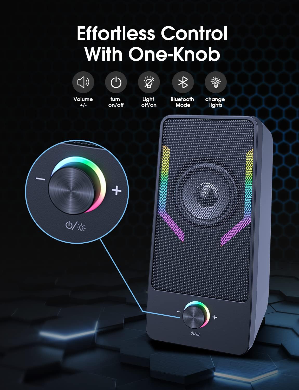 Bluetooth Computer Speakers, RGB Gaming Desktop Speakers with 7 Color Backlit, Crisp Stereo Sound Monitor Speakers with Easy-Access Control, 10W – USB-Powered for PC, Monitor, Desktop, Laptop