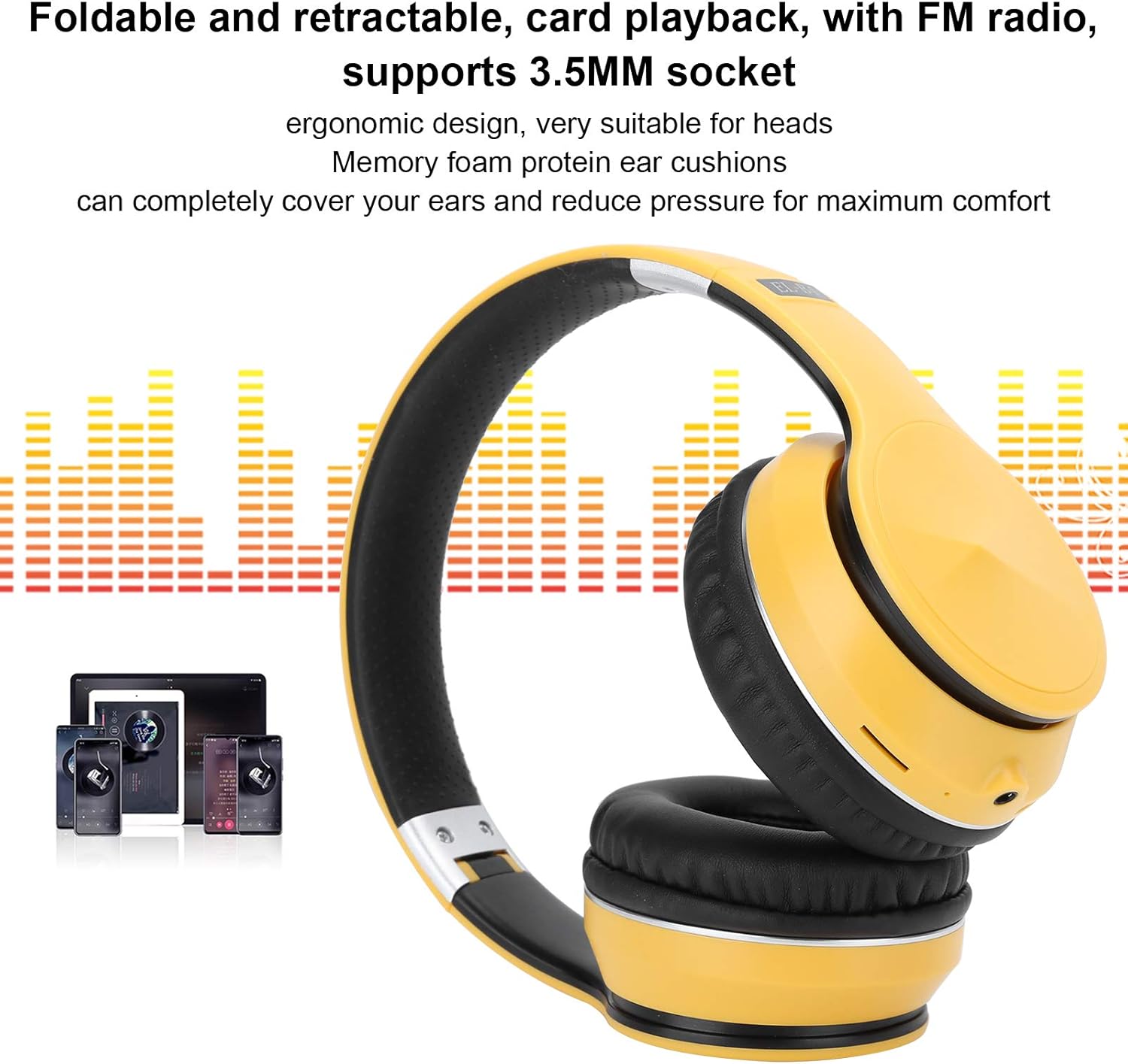 Memory foam protein ear cushions can completely cover your ears and reduce pressure for maximum comfort. Noise-cancelling heavy bass stereo music, foldable Bluetooth sound sports headphones, support memory card, fm radio mode.