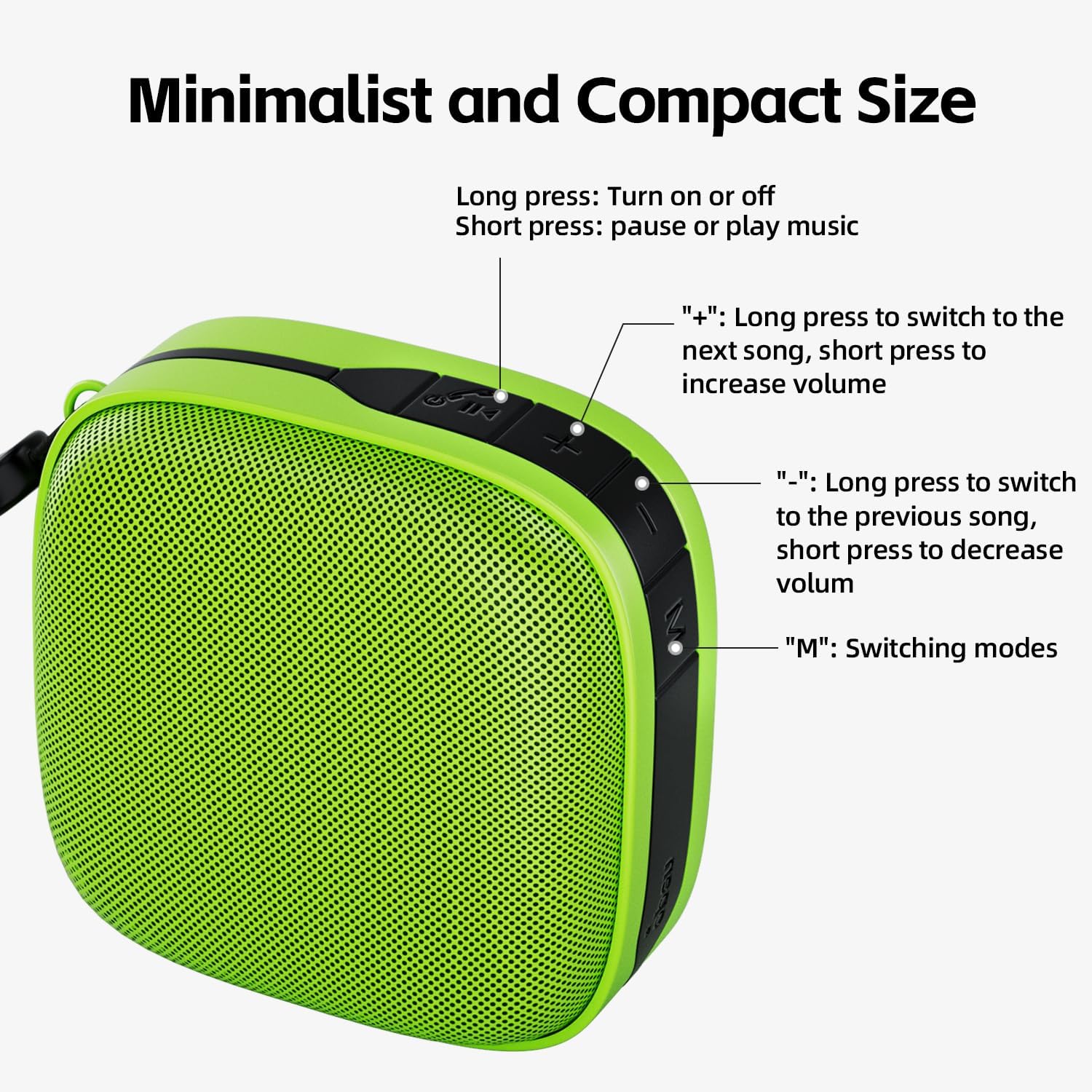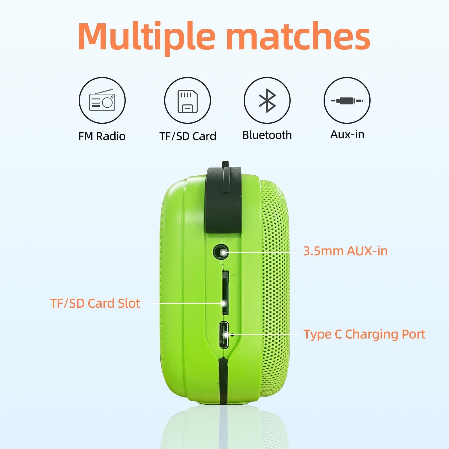 Bluetooth Speaker,Mini Portable Speakers,Mini Wireless Outdoor Speaker,TF Card SD Aux,Perfect Mini Speaker for Shower, Room, Bike,Car,Boating,Hiking(Green)