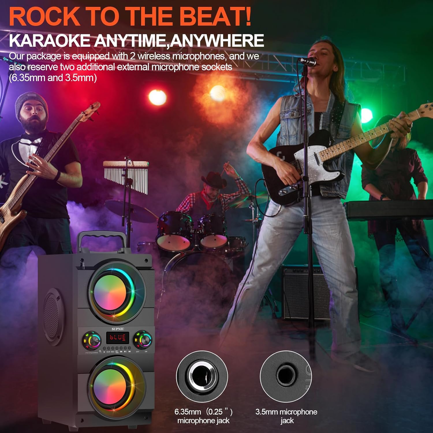 [Speakers Bluetooth Wireless] – Portable Party Speaker for Gatherings: SUPNIU A59karaoke machine is designed for fun, it’s designed with a carrying handle that allows you easily transported to different locations, you can enjoy your favorite music anytime and anywhere. It has 5 tuning controls (Master Volume tuning/ Bass tuning/Treble tuning/Microphone Echo tuning/Microphone Volume tuning) and Unique operation design is more attractive, making it the perfect addition to any party or gath