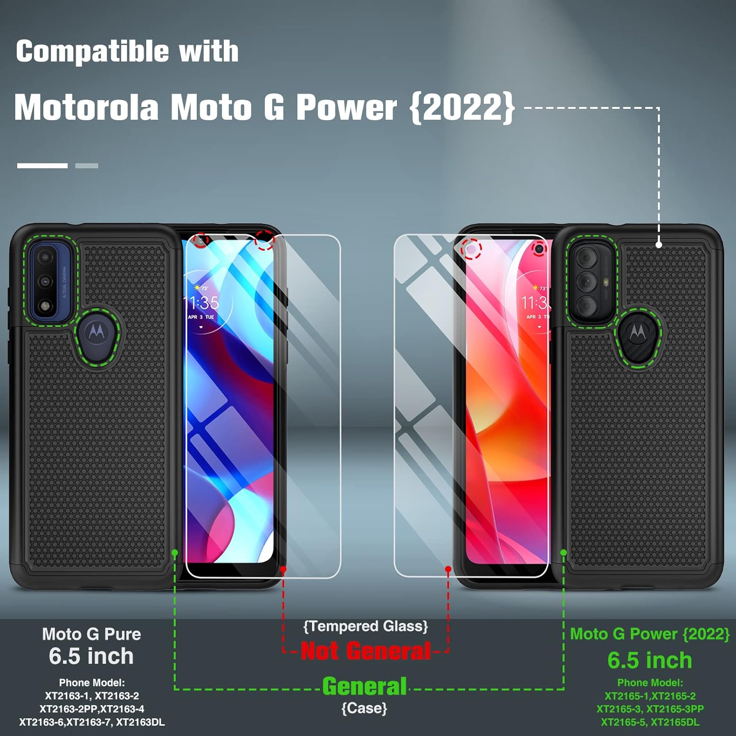 👍 Both fit motorola moto g play 2023 case / motorola moto g power 2022 case / motorola moto g pure case 2021 – ① fit Motorola Moto G Play (2023); ② fit Motorola Moto G Power (2022) 4G, Phone Model: XT2165-1, XT2165-2, XT2165-3, XT2165-3PP, XT2165-5, XT2165DL; ③ fit Motorola Moto G Pure (2021), Phone Model: XT2163-1, XT2163-2, XT2163-2PP, XT2163-4, XT2163-6, XT2163-7, XT2163DL . Packages: 1* smart phone basic cases + 1 pack tempered glass screen protector.