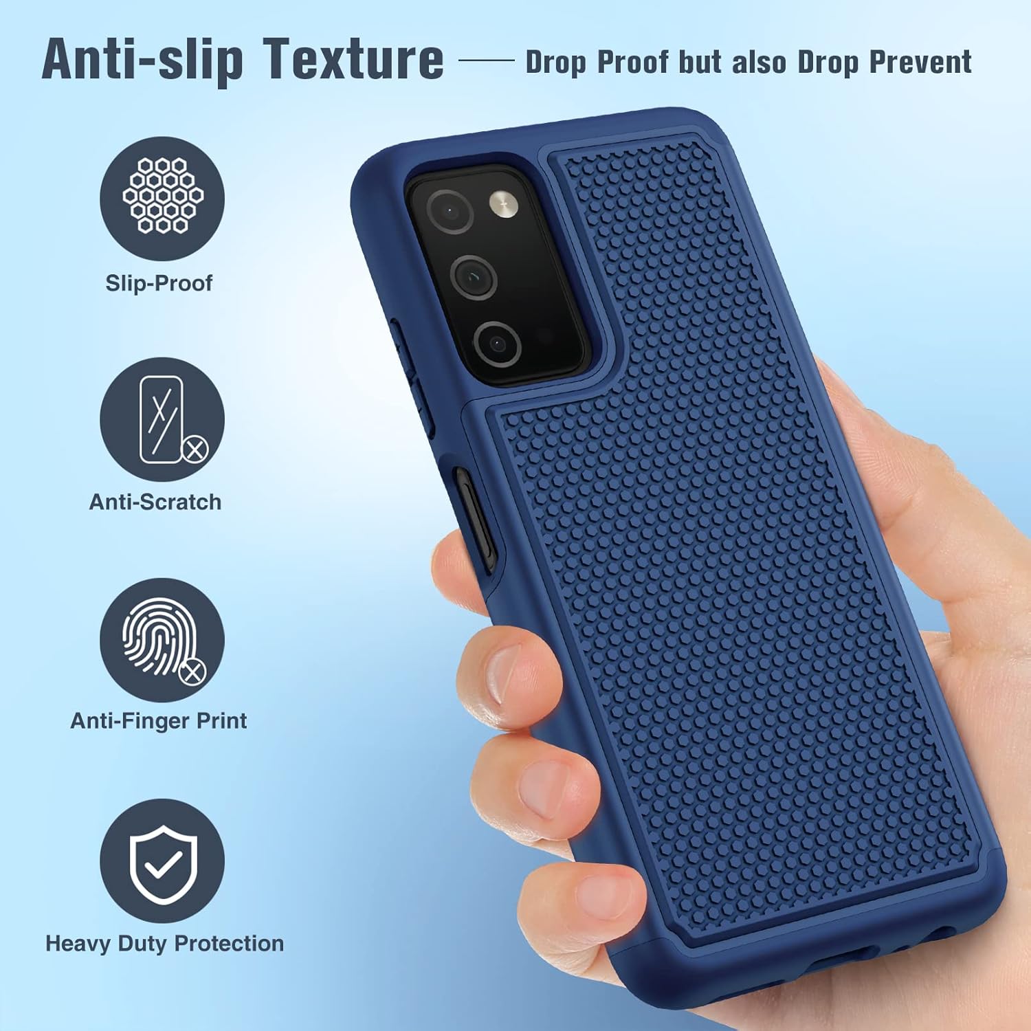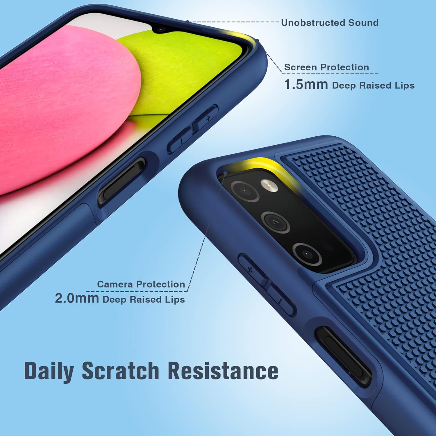 BNIUT for Samsung Galaxy A03s Case Shockproof: Dual Layer Protective Heavy Duty Cell Phone Cover Rugged with Non Slip Textured Back – Military Protection Bumper Tough – 6.5inch (Blue Navy)