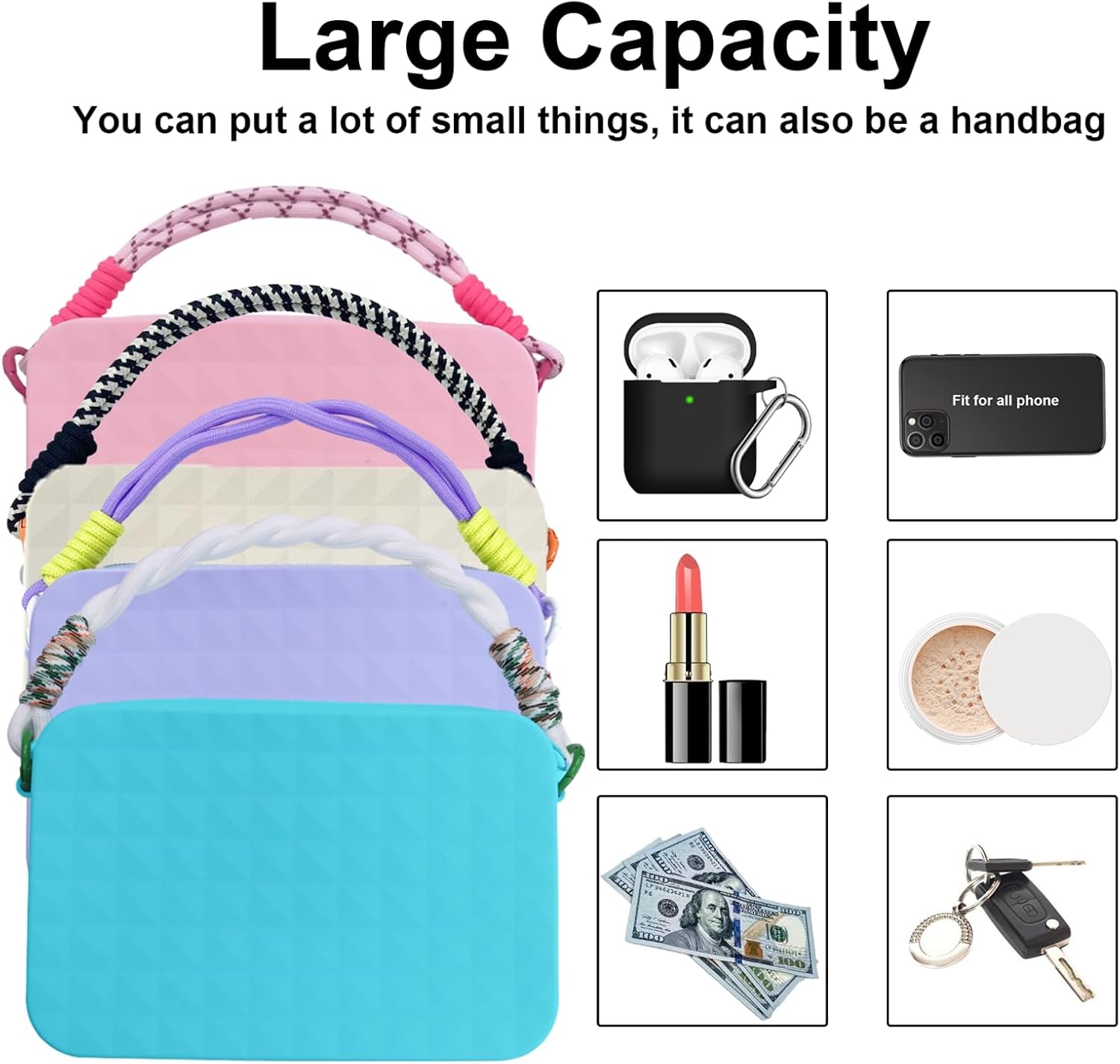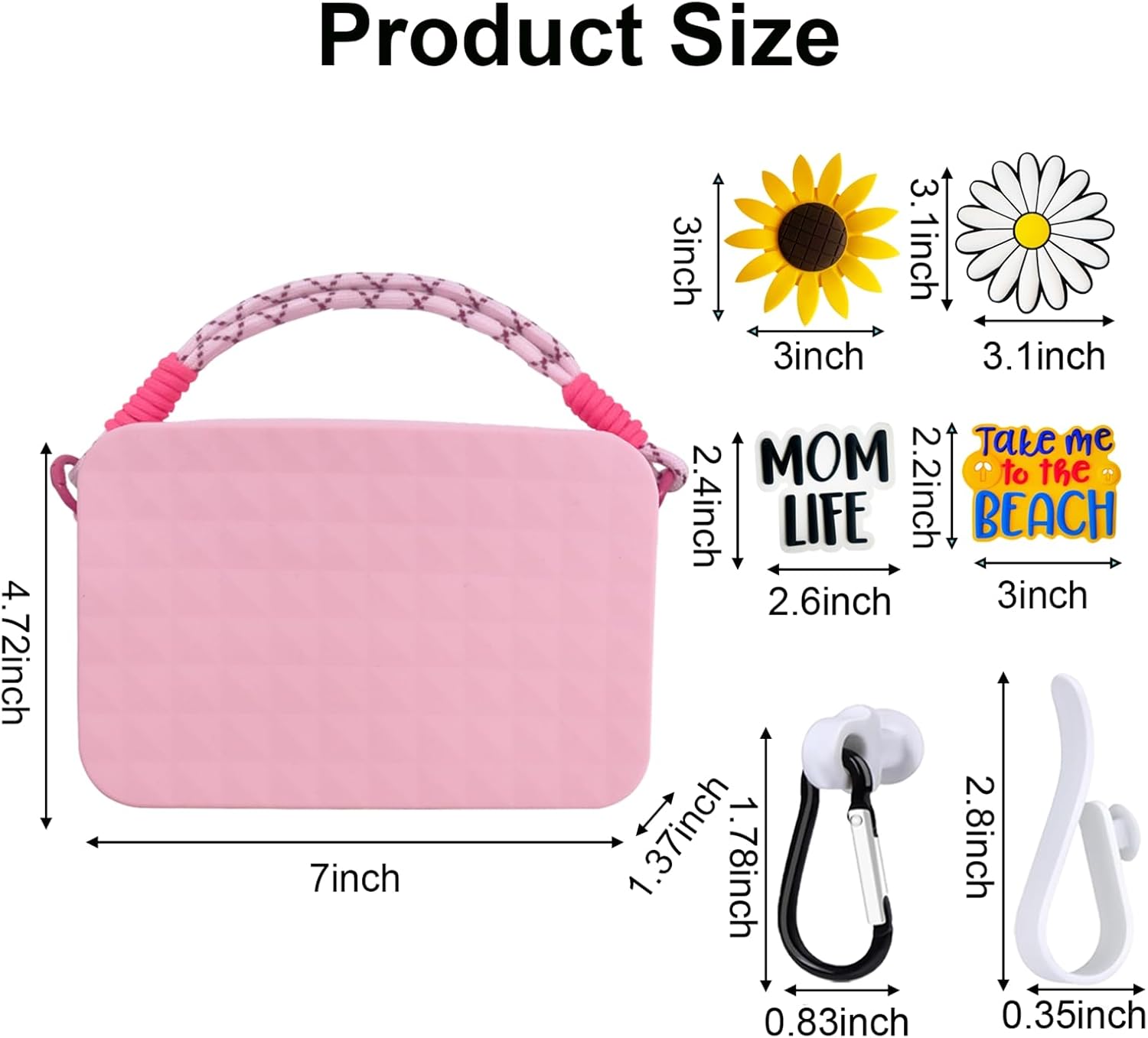 Product List:1Pcs*Silicone Bag 2Pcs*Carabiners 2Pcs* Keychains 4Pcs* Charms