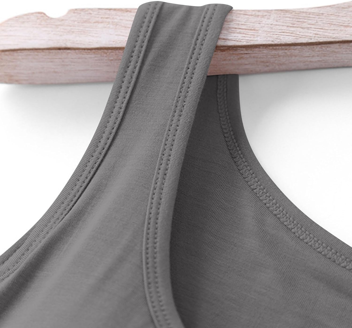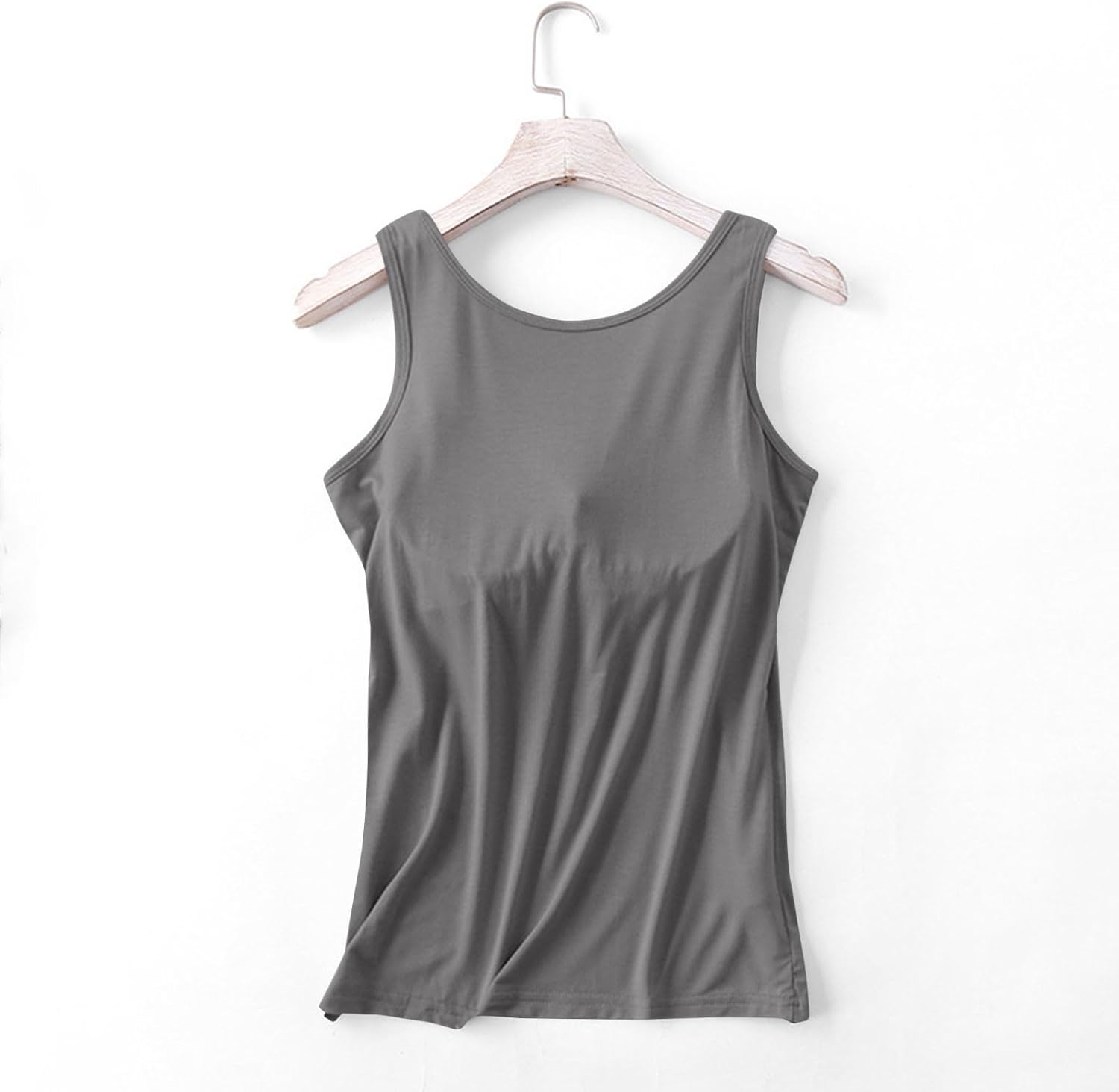 Built in Bra Tank Tops for Women 2024 Trendy Sleeveless Round V Neck Yoga Tops Comfy Soft Basic Layer Cami Shirt