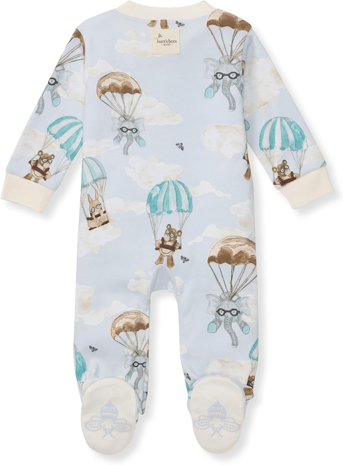Burt’s Bees Baby Boys’ Sleep and Play Pjs, 100% Organic Cotton One-piece Zip Front Romper Jumpsuit Pajamas