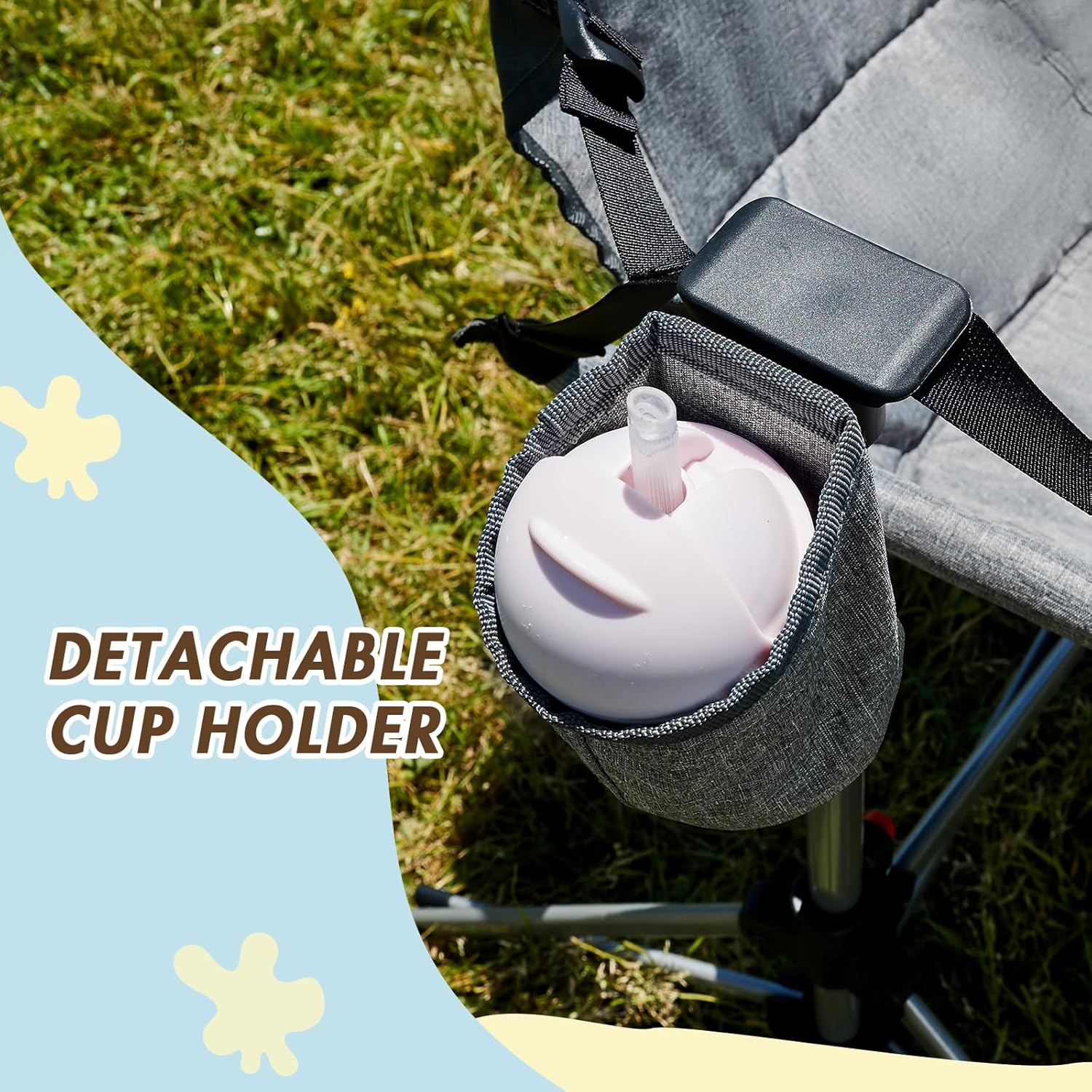 CUSTOMIZED COMFORT: Unlike other kids chairs, this hammock camp chair has adjustable straps on both sides to customize the backrest angle; our kids folding chair also includes a convenient cupholder to keep drinks nearby