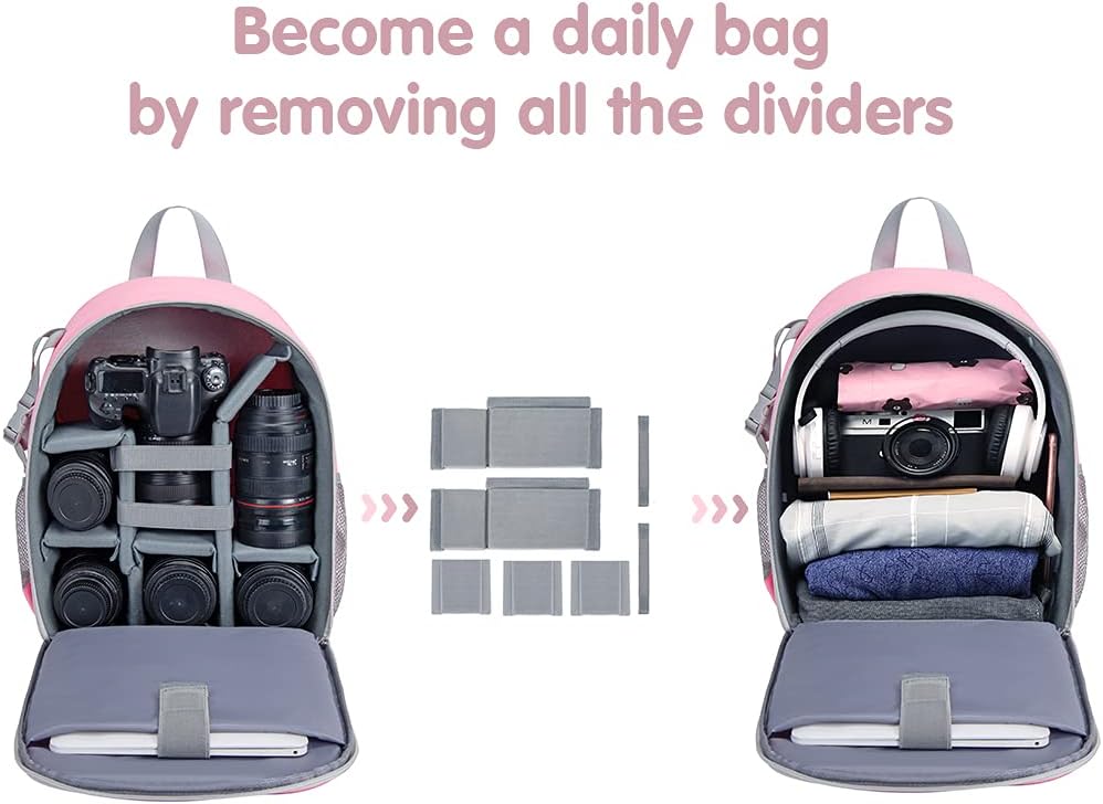 CADeN Camera Backpack Bag Professional for DSLR/SLR Mirrorless Camera Waterproof, Camera Case Compatible for Sony Canon Nikon Camera and Lens Tripod Accessories (Small, Pink)
