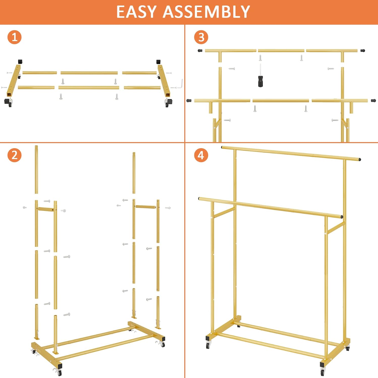Calmootey Double Rod Clothing Garment Rack,Rolling Hanging Clothes Rack,Portable Clothes Organizer for Bedroom,Living Room,Clothing Store,Gold