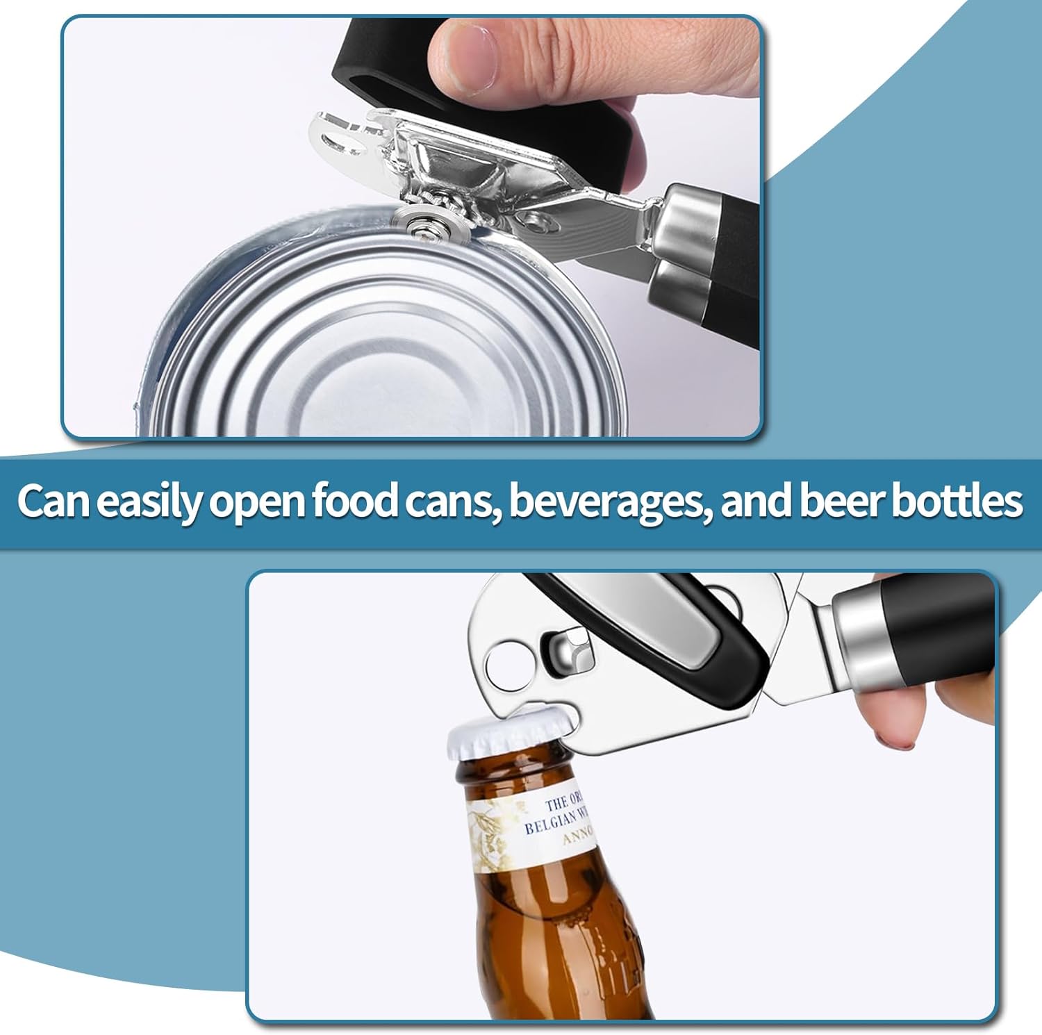 Heavy Duty Can Opener: Our can opener is made of high-quality stainless steel, has a long service life. It is suitable for various sizes of cans, such as beer cans, soda cans, and food cans.