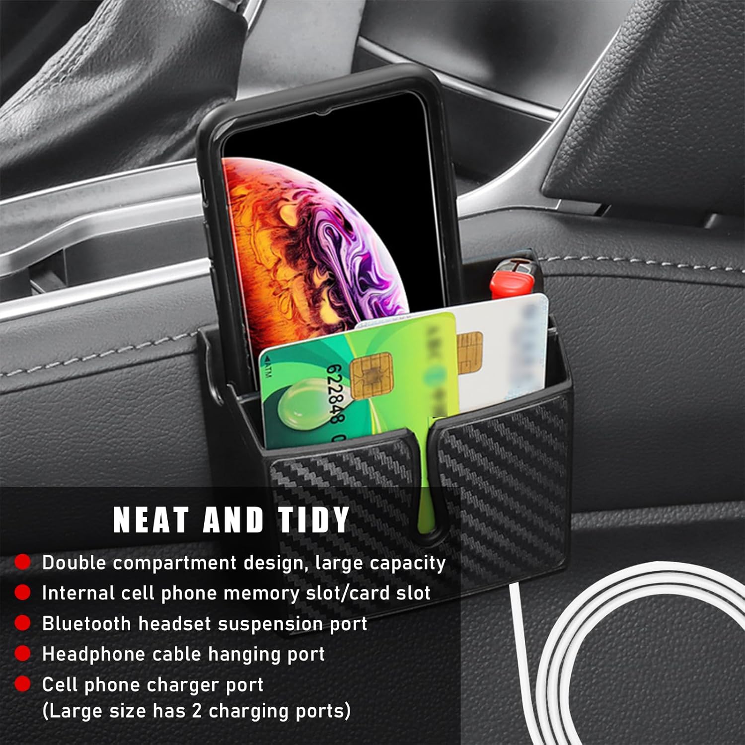 【Beautiful & Convenient】: The surface is treated with carbon fiber texture technology, the workship is fine, fashionable and versatile, which can enhance the grade of your car. And both sizes of the storage boxes have charging ports reserved respectively at the bottom. Easy to plug in and out, convenient to meet your mobile phone charging needs.