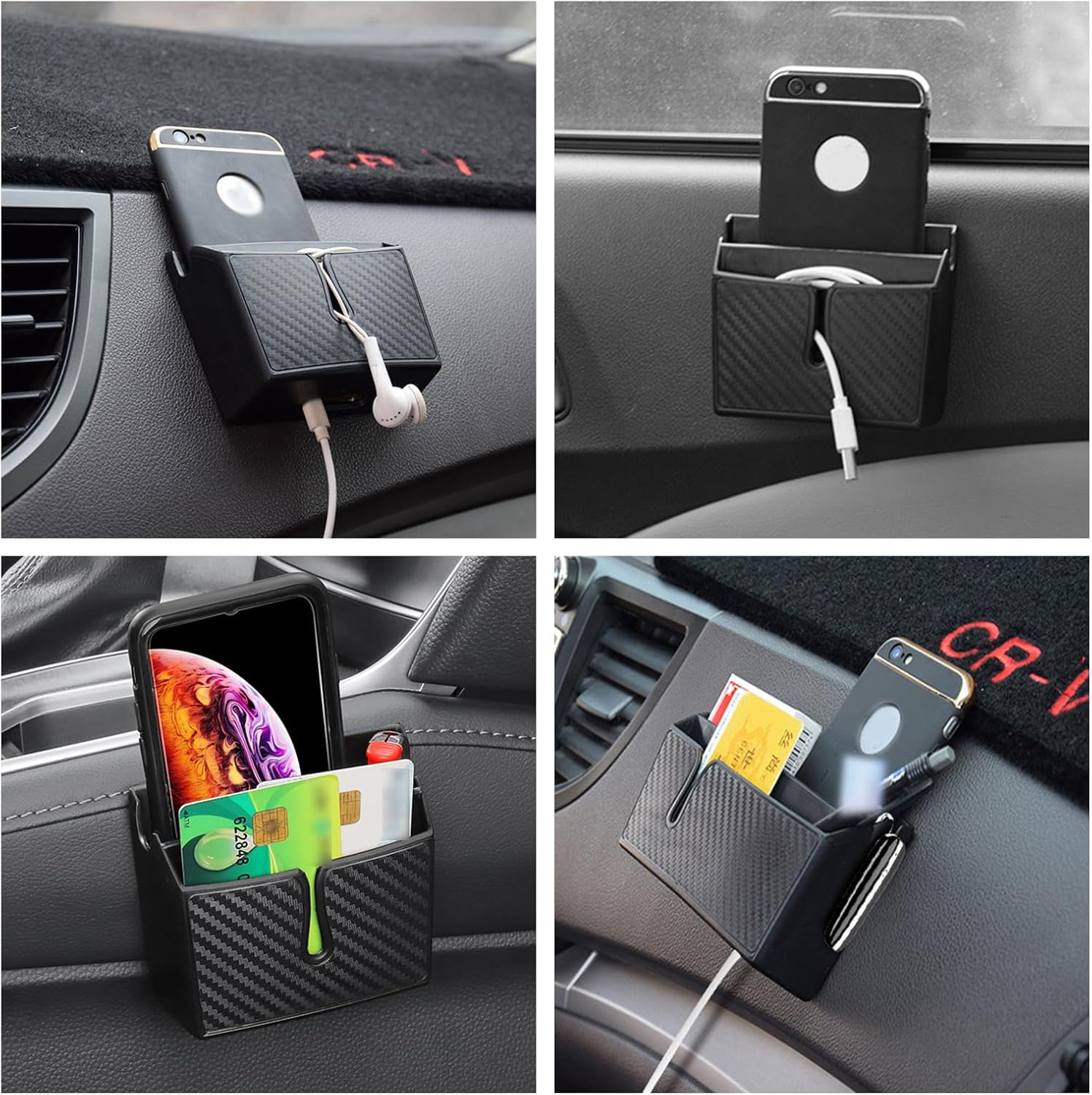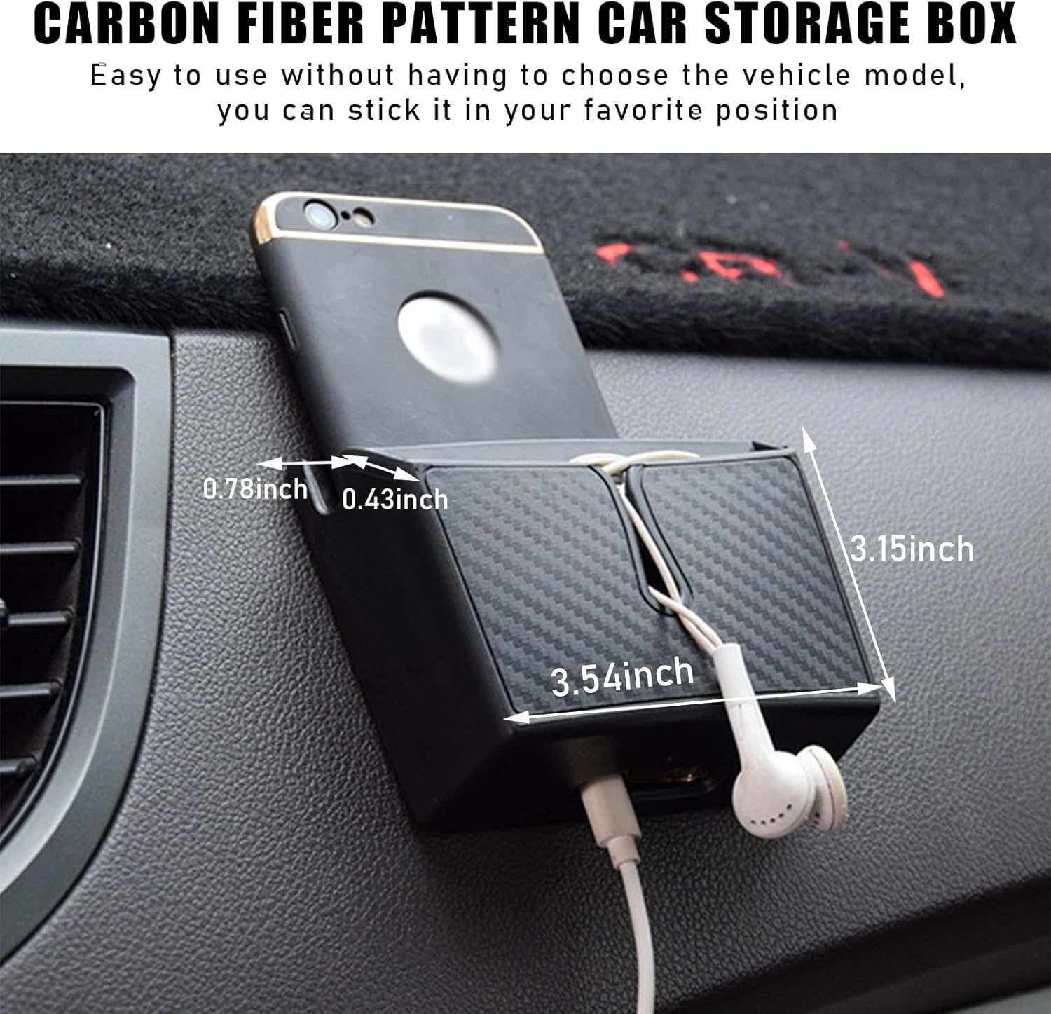 Car Storage Box for Mobile Phone, Multifunctional Carbon Fiber Car Cell Phone Holder, Auto Dashboard Pocket Organizer, Vehicle Interior Accessories for Storge Phone Key Coin (Small)
