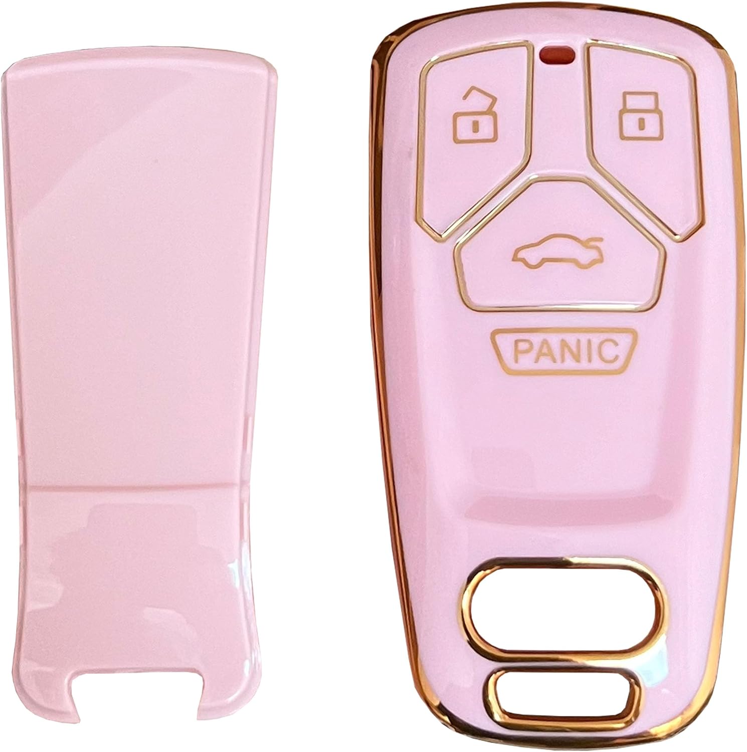 Car TPU Key Case for Audi Key Fob Cover Fit for 4 Buttons Audi 2017-up A4 A5 Q7 TT Smart Key Fob Shell (Pink)