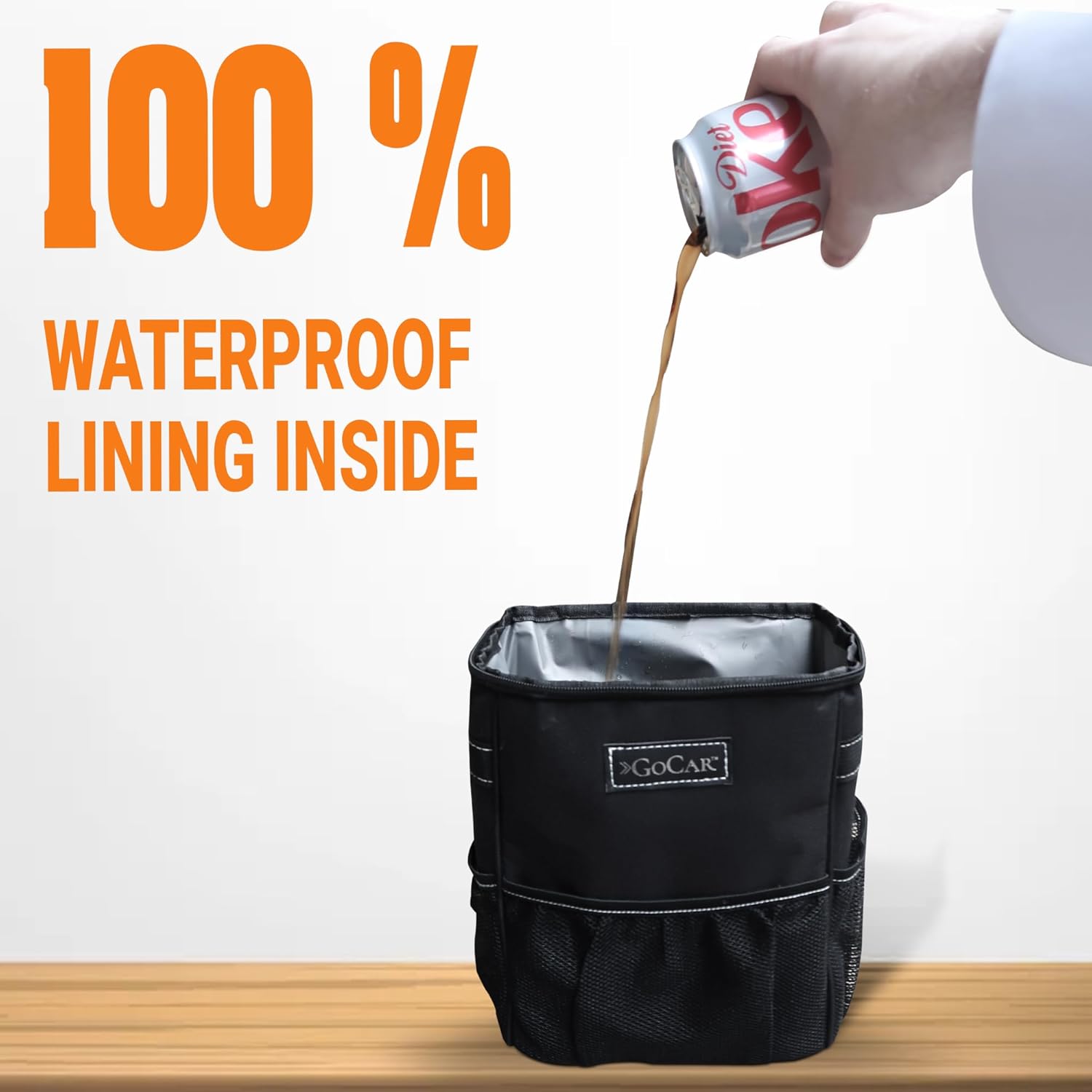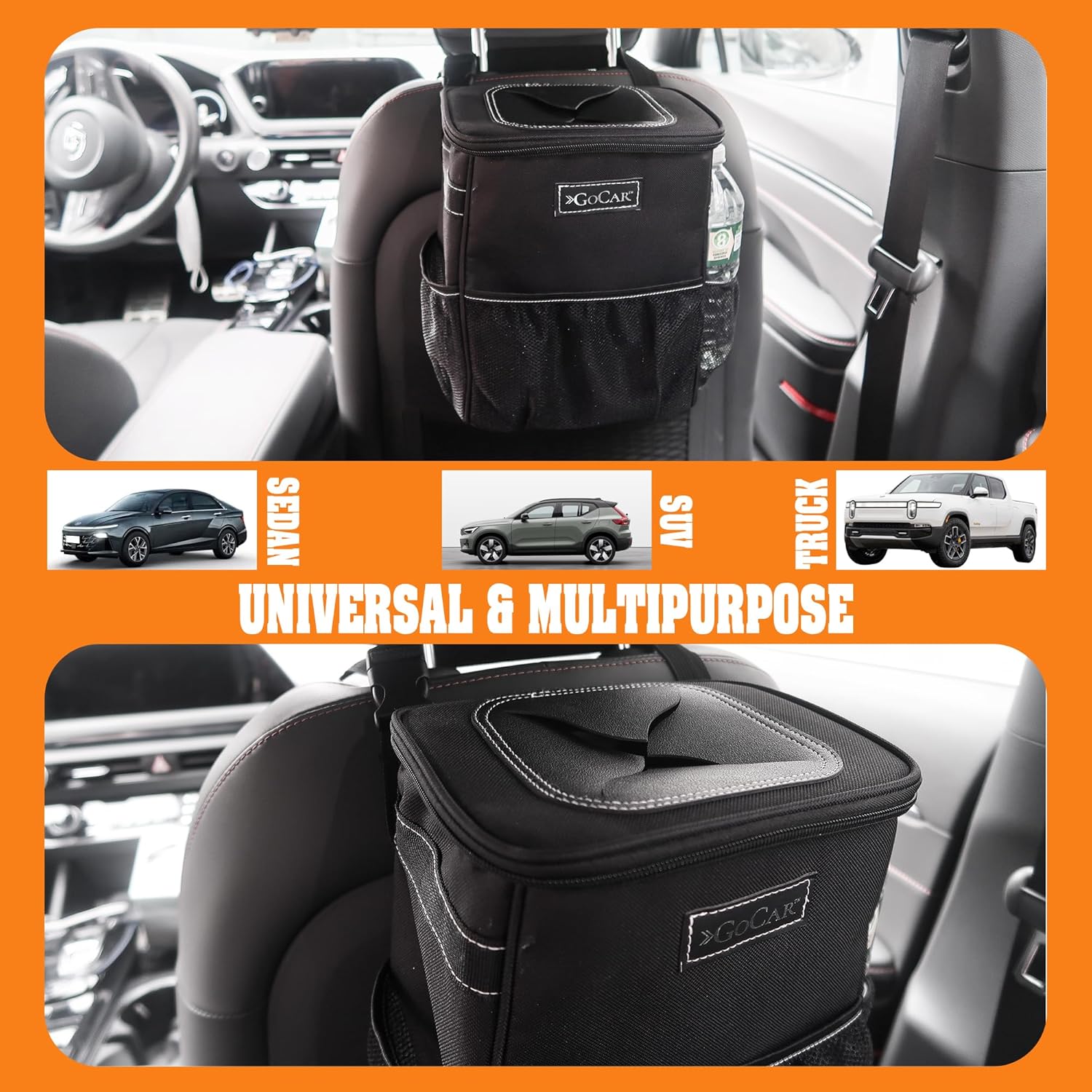This upgraded GoCar trash can for cars SUV has a large capacity of 2 gallons and is ideal for traveling essentials or roadtrip essentials adults. This is a cheap, effective can organizer.