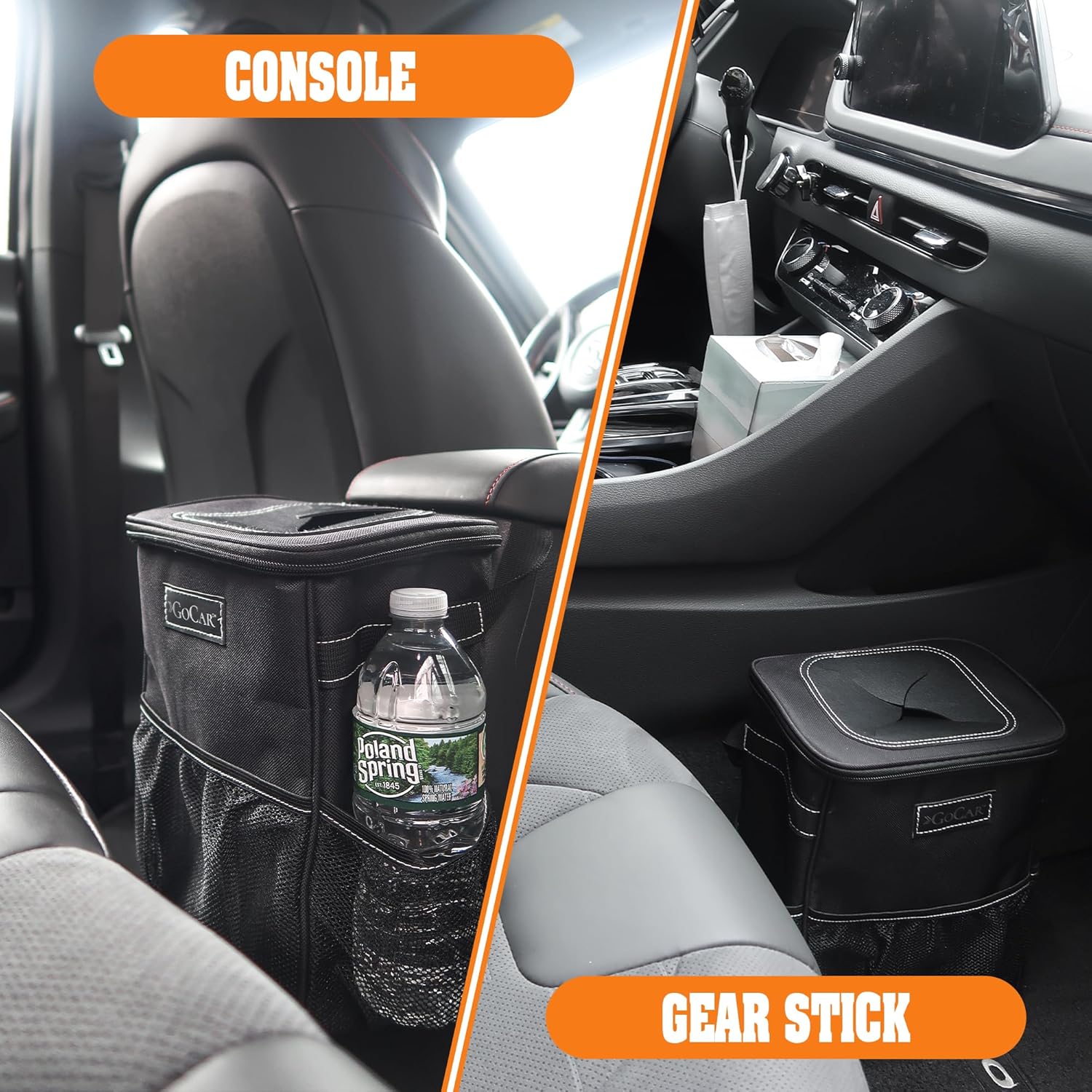 TIGHT VELCRO CLOSURE: Gocar takes extra steps to ensure the garbage can with lid is tightly sealed. Compared with traditional car door trash can, those Velcro patches makes the replacement of mini trash bags easier. Simply detach the trash can lid Velcro to replace the used black trash bags with a new car trash bag. Just 2 steps making it the best car accessories for men!