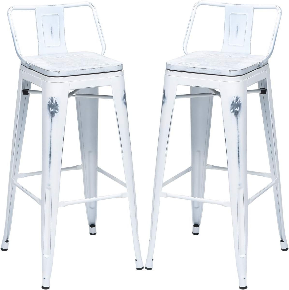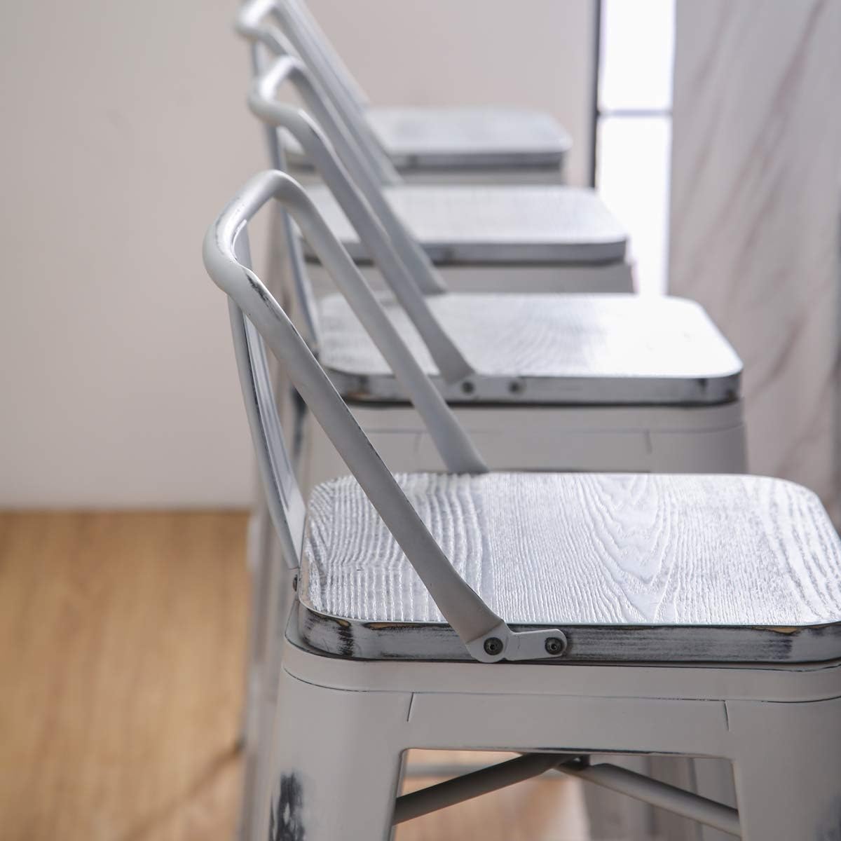 Changjie Furniture Bar Stools Counter Height Bar Stools Industrial Metal Barstools Set of 4 for Home Kitchen (30 inch, Distressed White)