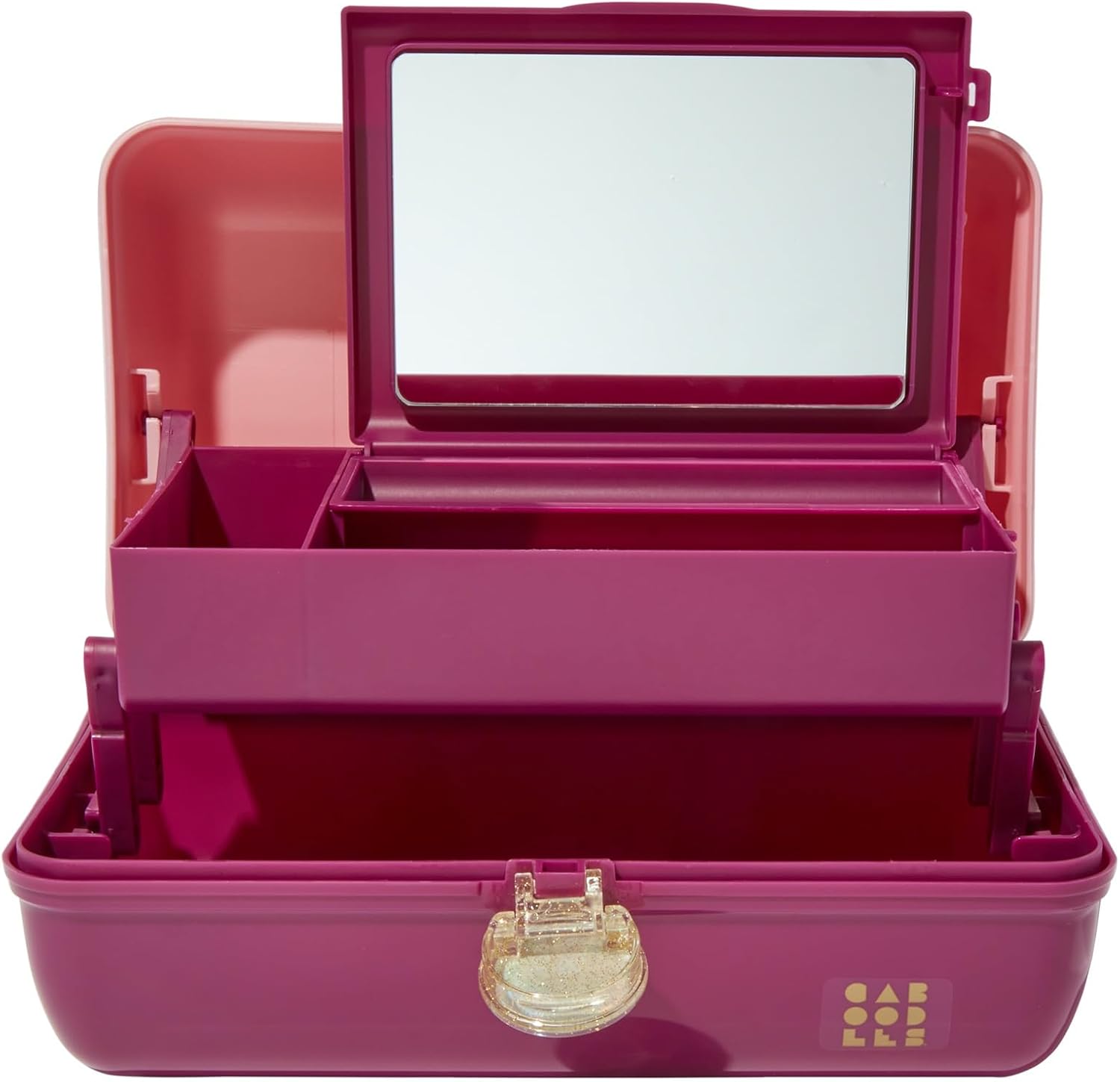 Claire’s Features – Caboodles Makeup Case, On the Go Girl Travel Cosmetic Organizer with Mirror, Pink & Violet with Glitter Gold Handle Storage Box: 13 x 7.4 x 6 Inches