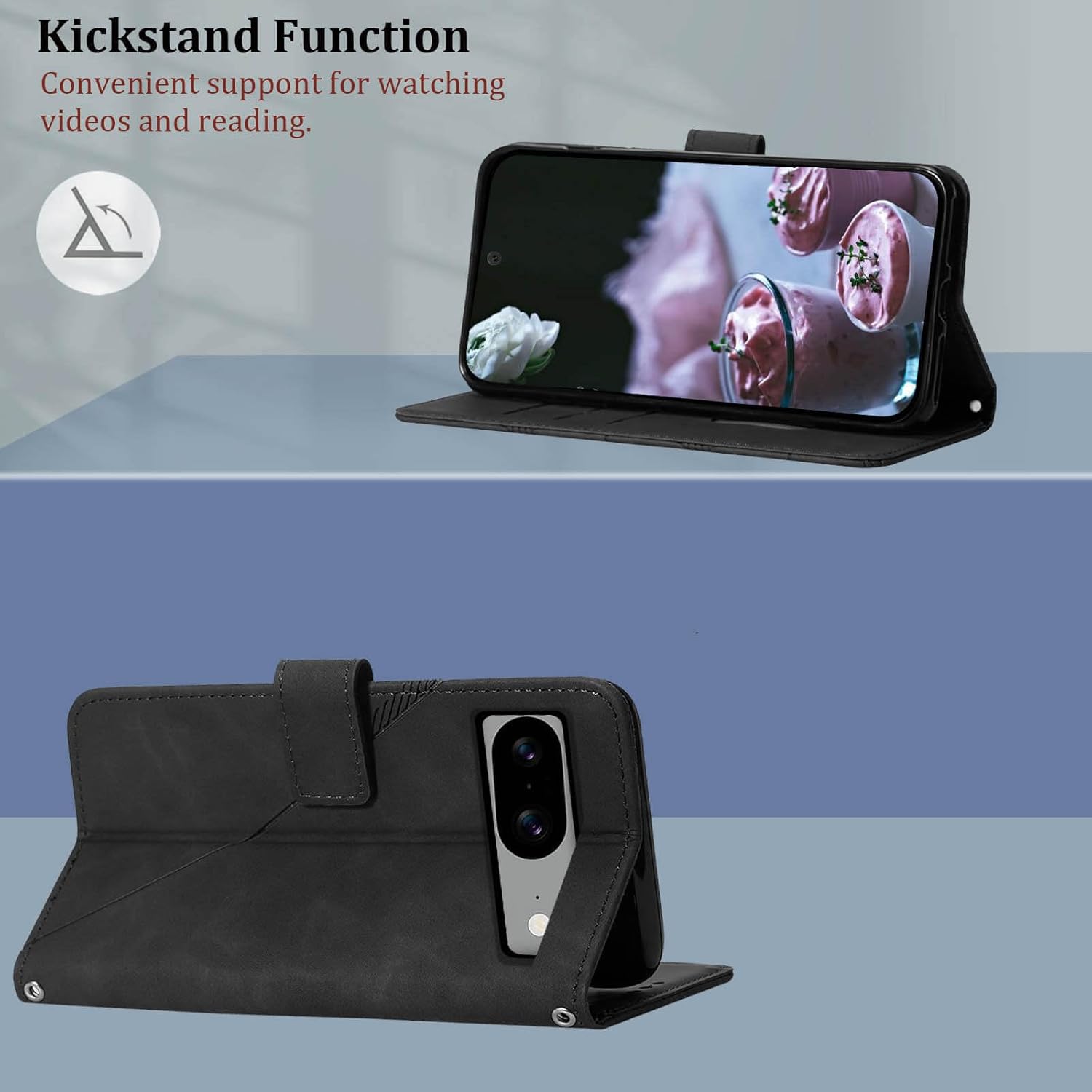 For Pixel 8a Wallet Case [Kickstand-Function]: Adjustable Viewing Angles,Can be converted easily into a stand,freely and relaxed to enjoy video, movies, Face Time, E-book, Pictures, etc (Will be Like this for Pixel 8a wallet case, especially the designed patterns).It is a perfect gift for women, men, girl, boy, family and friend.