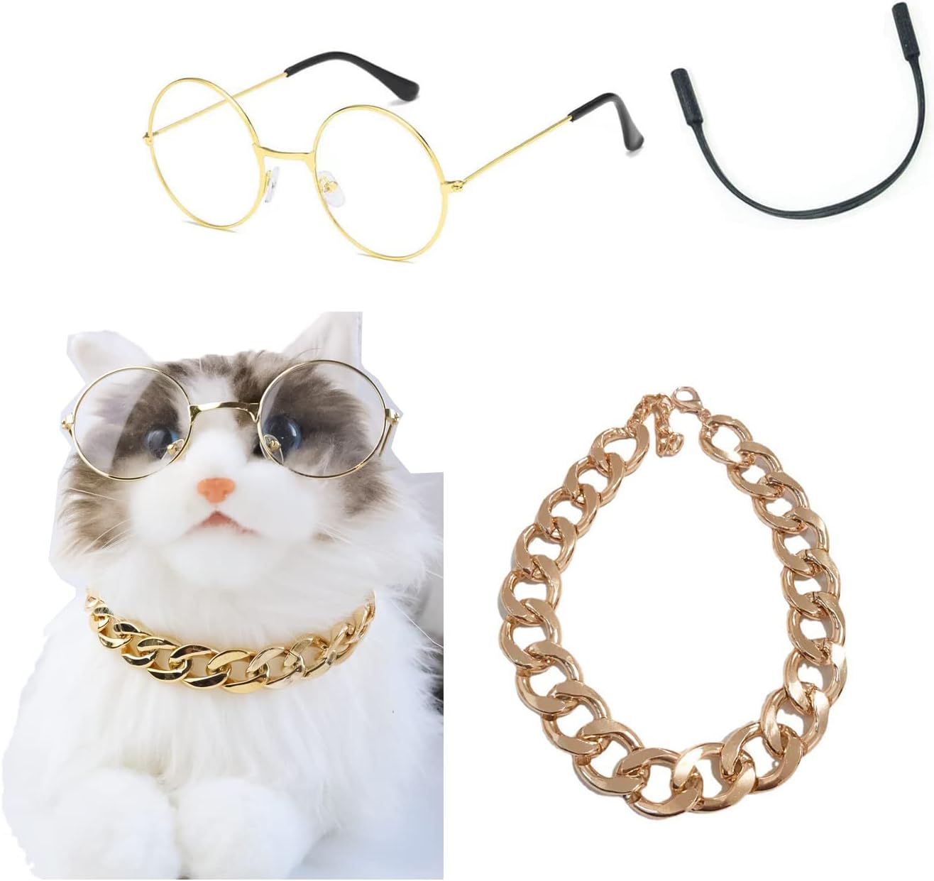 The best decorations for small cat photographing,Glasses Length: 3.15″(Approx.),Collar chain Length: 7.8-10inch(20-26cm)