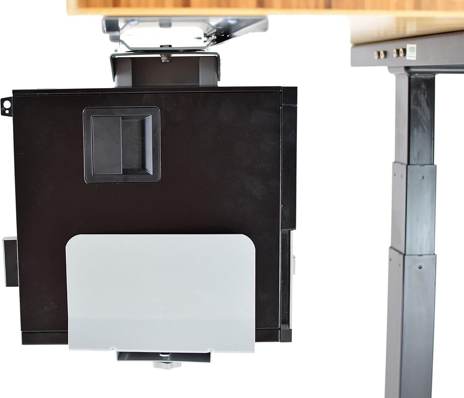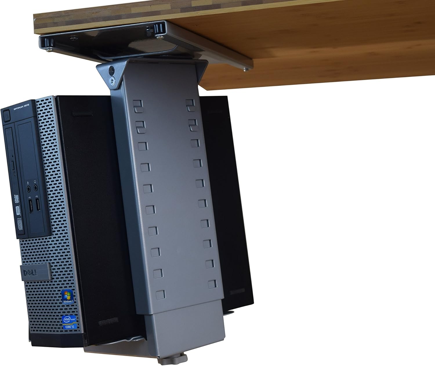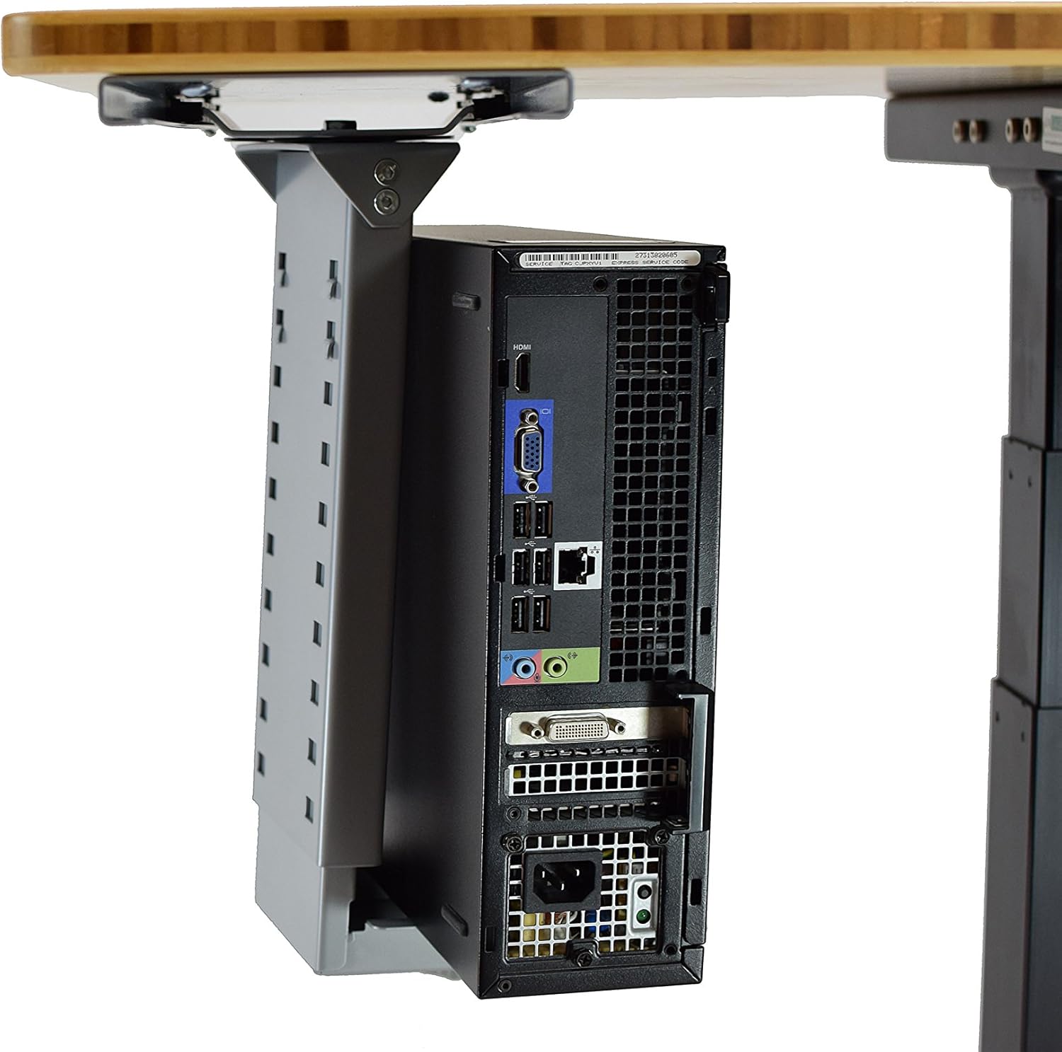 Frees Up Desk Space! store your CPU under your deskAdjustable: metal cpu cage adjusts to hold a range of CPU sizesMoves With You: perfect standing desk accessory