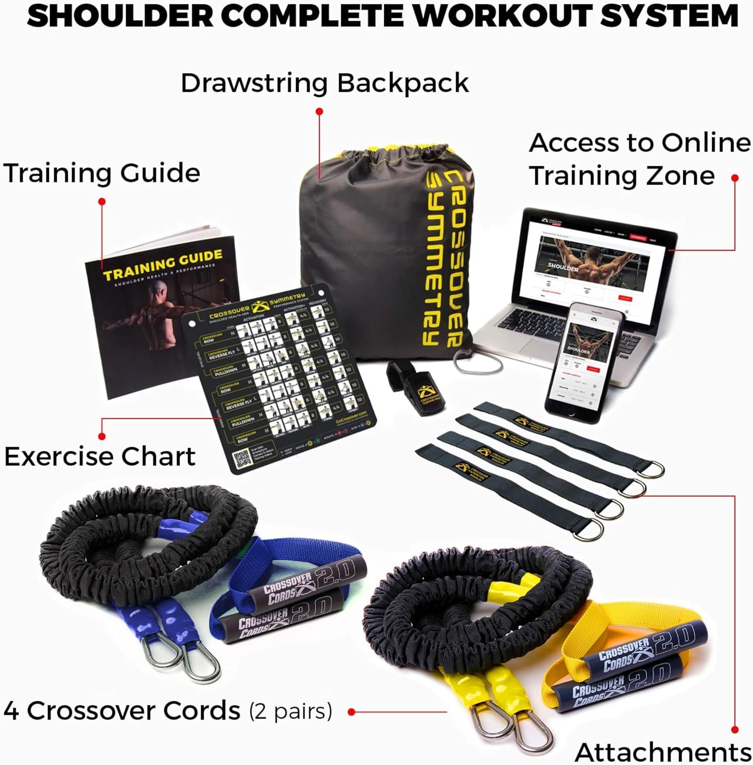 Crossover Symmetry Shoulder System Includes Two Sets of Resistance Bands Attachments Training Guide Exercise Chart Online Workouts for Home Fitness Rehab Rotator Cuff Exercises