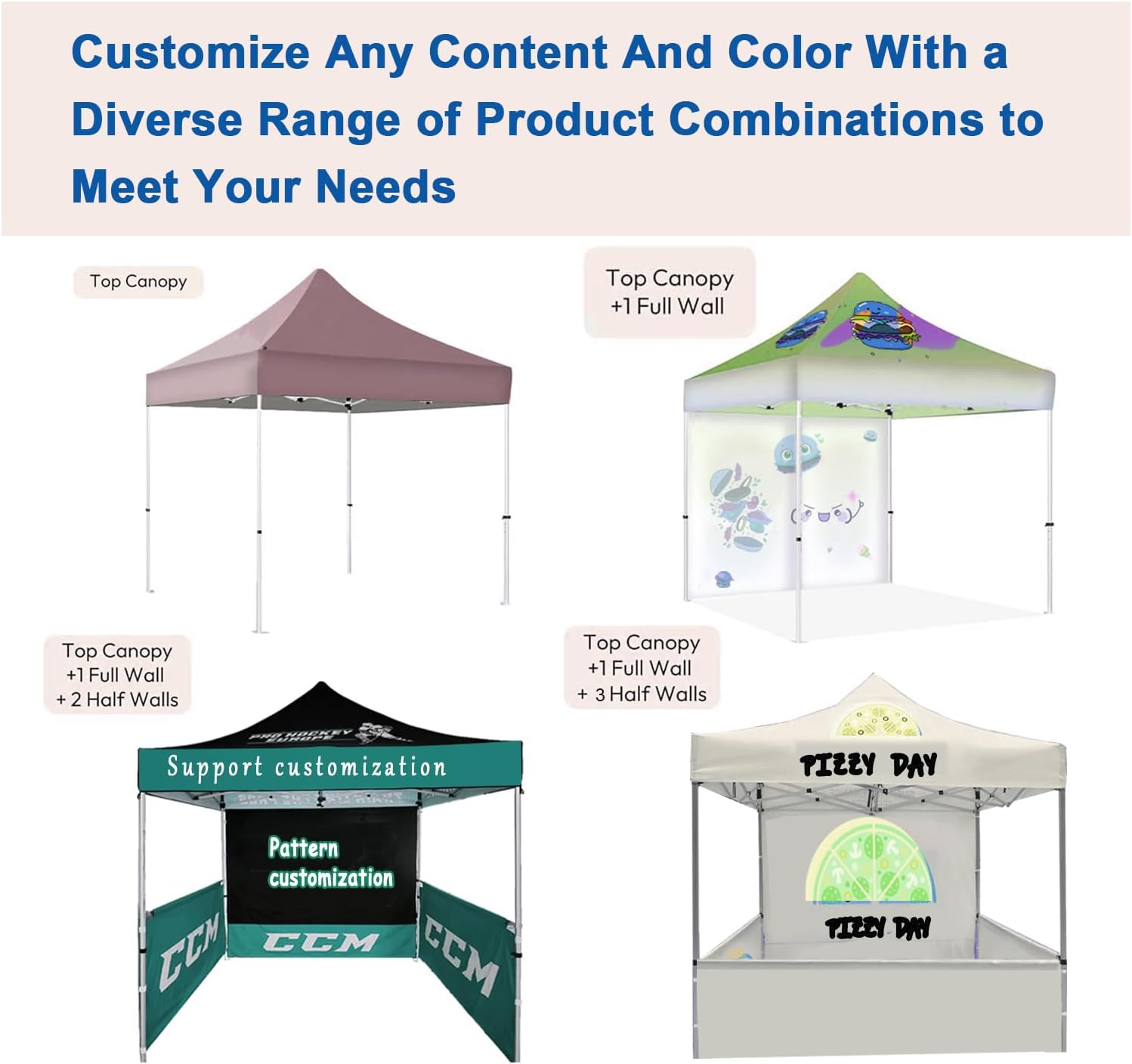 CUSTOMIZE NOW:You can customize your tent with your own image, logo, text, etc. Simply click on the “Customize Now” button to customize your personalized tent and bring your ideas to life, creating a one-of-a-kind canopy for any setting.