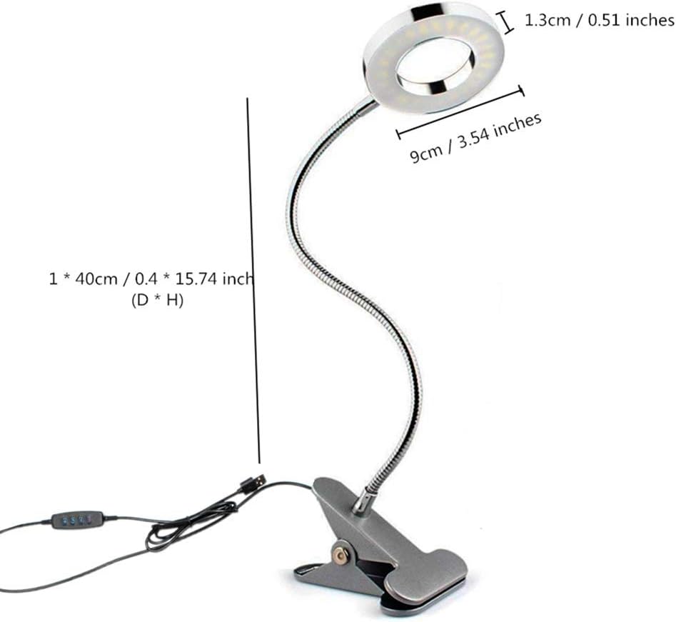 Dimmable 5W LED USB Plug Clip On Light Flexible Gooseneck Reading Lamp for Laptop, Book,Piano,Bed Headboard,Desk, 3 Lighting Colors, 10 Brightness Levels (Silver)