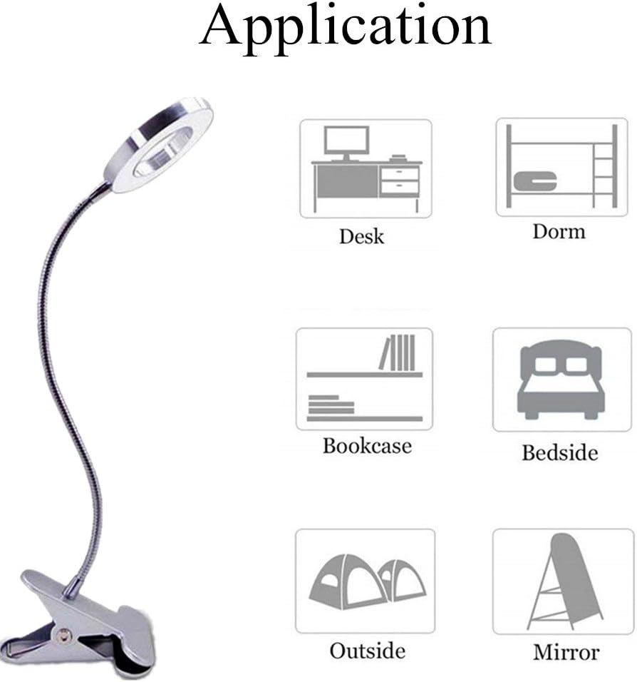 4.Multifunctional Clip: With the clip, you can attach it anywhere, such as desk, bedside,table. It can be moved around everywhere. It is the Best for bedroom reading, Office working or kids Studying.