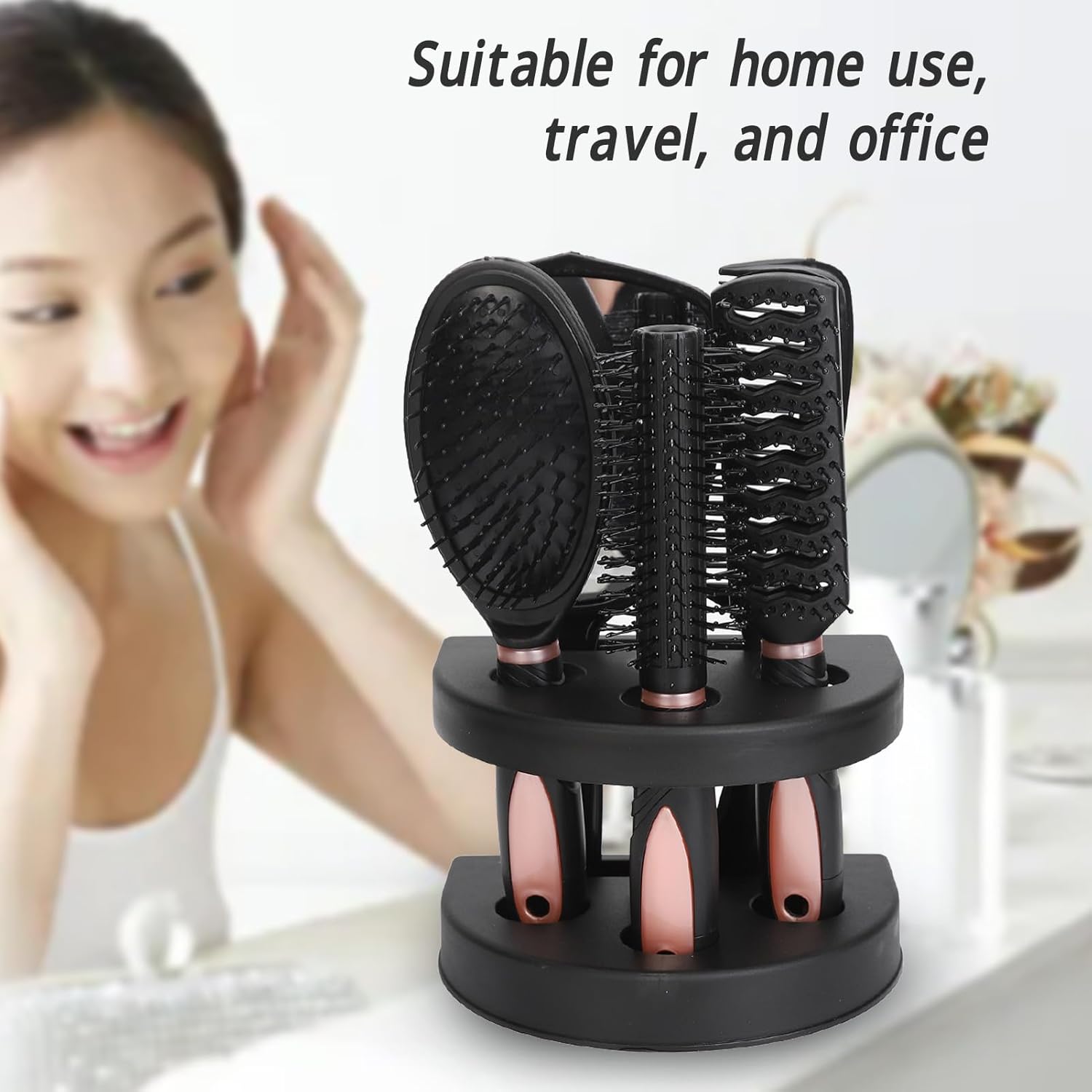 Dioche 5PCS Hair Combs Set with Holder Stand, Professional Salon Hair Cutting Brushes Sets, Paddle Hair Brush Detangle Massage Styling Comb Mirror And Holder Stand Set