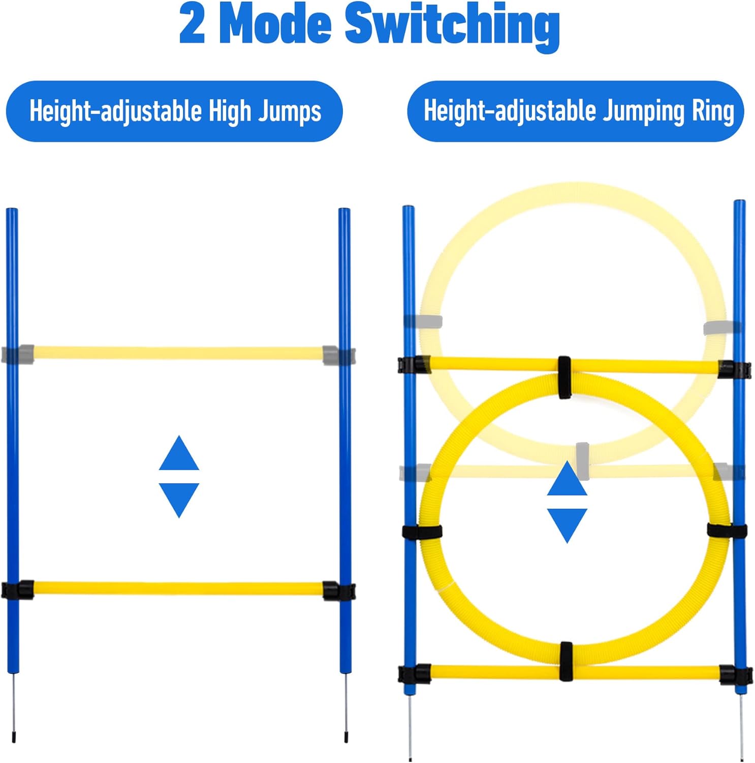 Customizable Height: Our dog agility equipment features a height adjustable hoop jump that can be tailored to your dog’s size and skill level, making it perfect for beginners and advanced jumpers alike