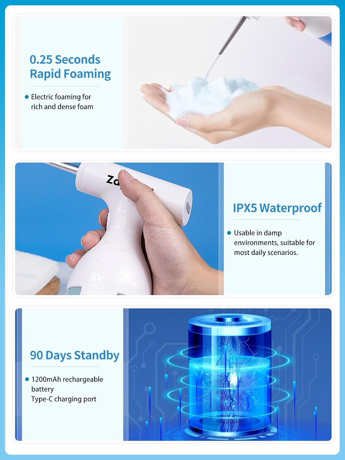 Effortless Foam Generation: Instantly create rich foam with the press of a button, reducing detergent usage and making cleaning tasks easier. Perfect for dog bath, kitchen cleaning, dishwashing, bathtub and bathroom cleaning. Features two nozzles for precise foam spraying up to 8.5 feet, ensuring efficient and targeted cleaning without bending or reaching