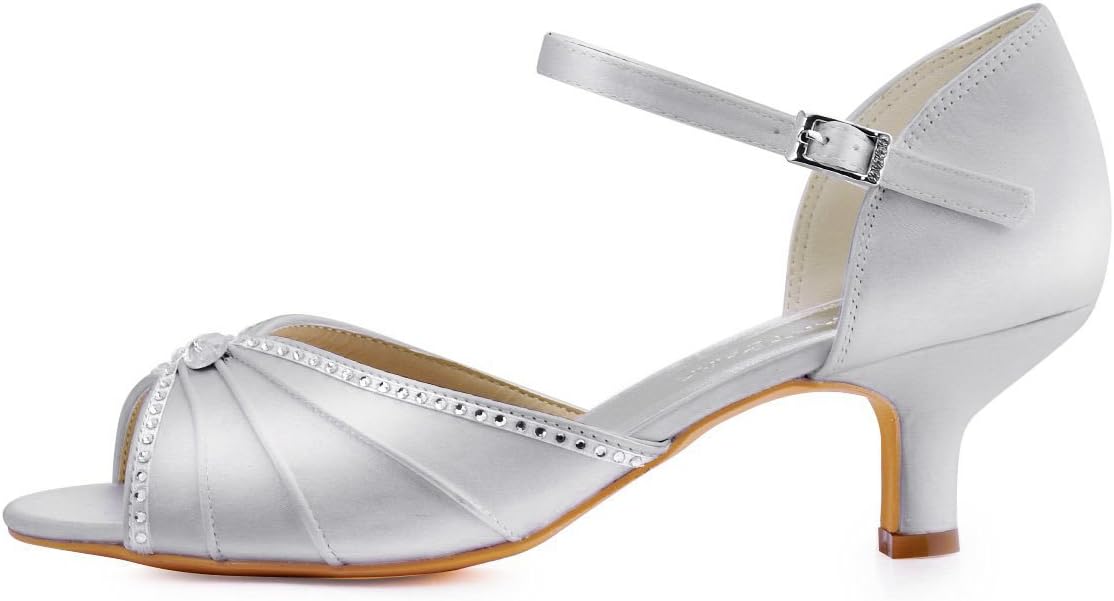 ELEGANTPARK EL-035 Women Peep Toe T-Strap Pumps Mid Heel Rhinestones Satin Evening Wedding Bridal Sandals