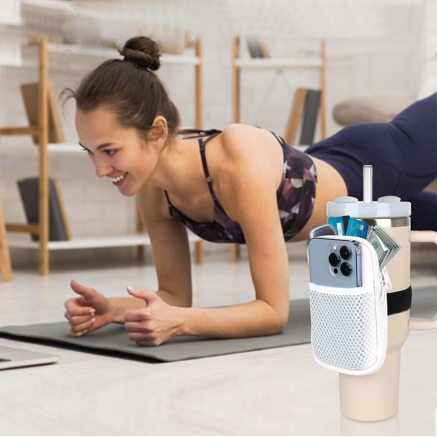 evron Water Bottle Pouch for Stanley Cup, Stanley Cup Accessories 40oz with Spacious Opening Mesh Pocket Fit for Most Mobiles,Gym Accessories Slip Proof Elastic Armband Tumbler Pouch