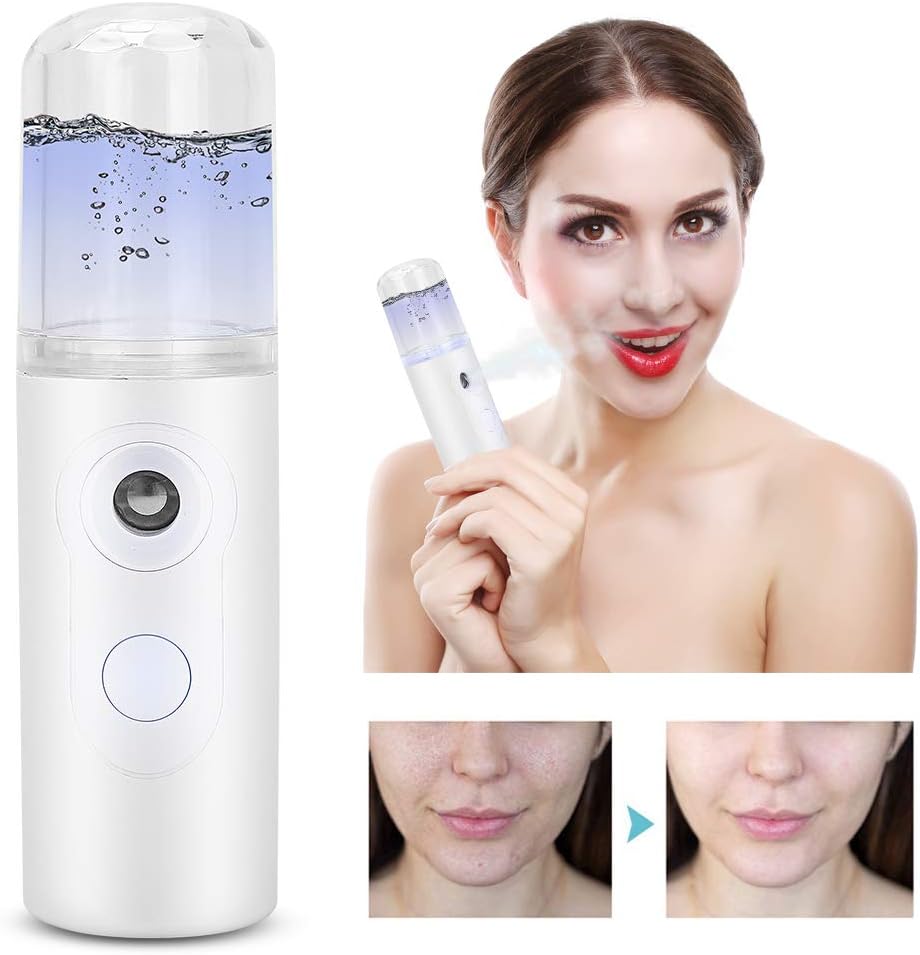 [PORTABLE BEAUTY] Enjoy portable beauty with Face Mist Sprayer. This pocket-sized device is easy to carry and can be charged via USB. Simply fill it with water, press the switch, and it will emit a beautiful mist. Whether you’re in the office, on a plane, outdoors, or in the locker room, you can enjoy a refreshing facial sauna anytime, anywhere.