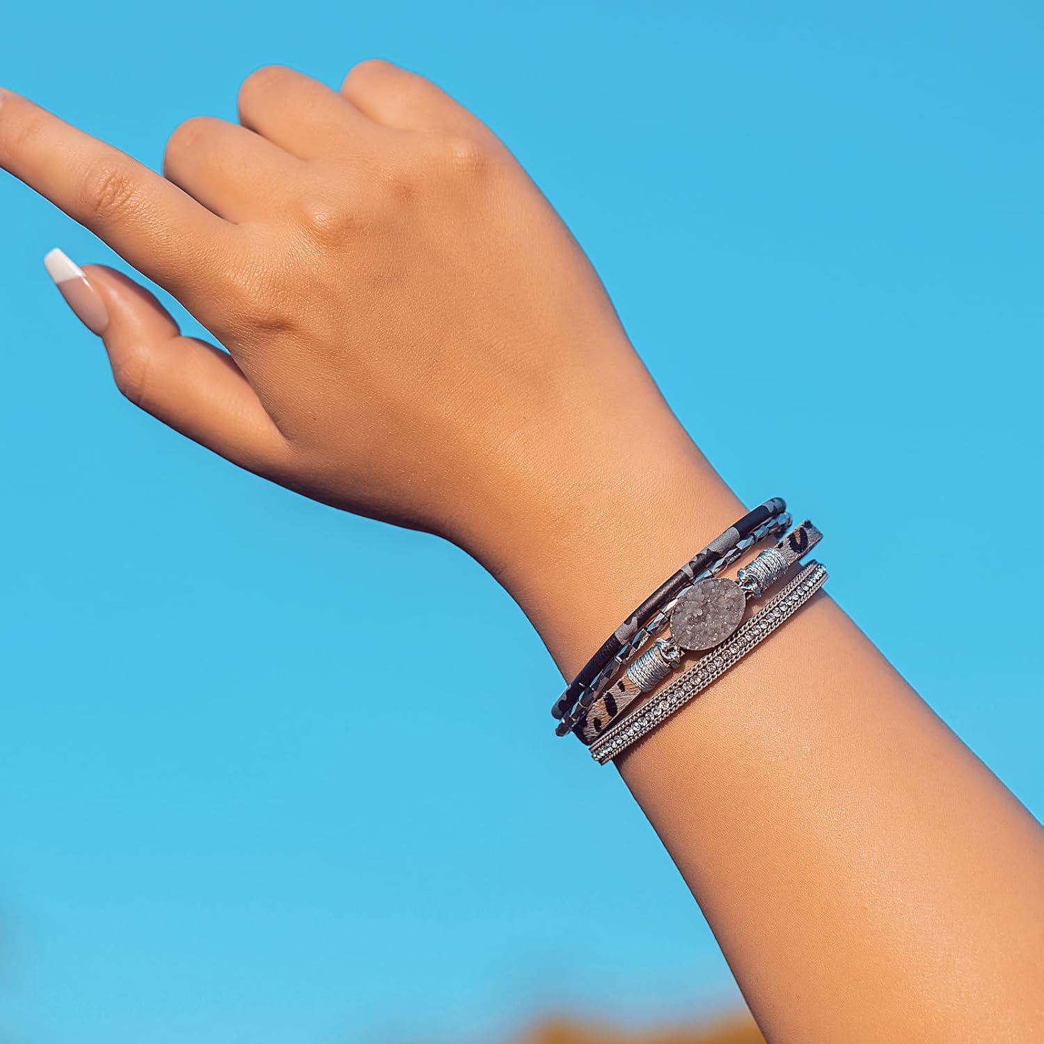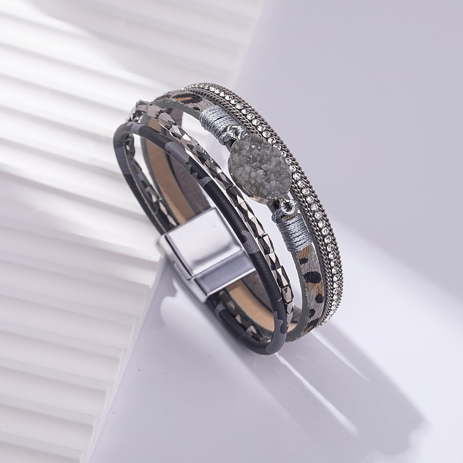 We use matte clasps to improve texture of leather bracelet instead of polished ones. It is easy to put on and take off the boho bracelet with the high quality magnetic clasp.