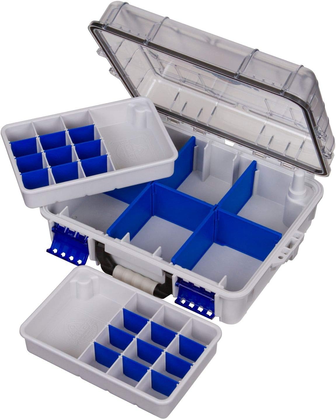 WATERPROOF CONSTRUCTION: This tackle box has a durable, thick-wall construction and a 360-degree waterproof, airtight rubber gasket. The recessed, polycarbonate lid serves as a nearly indestructible work surface.
