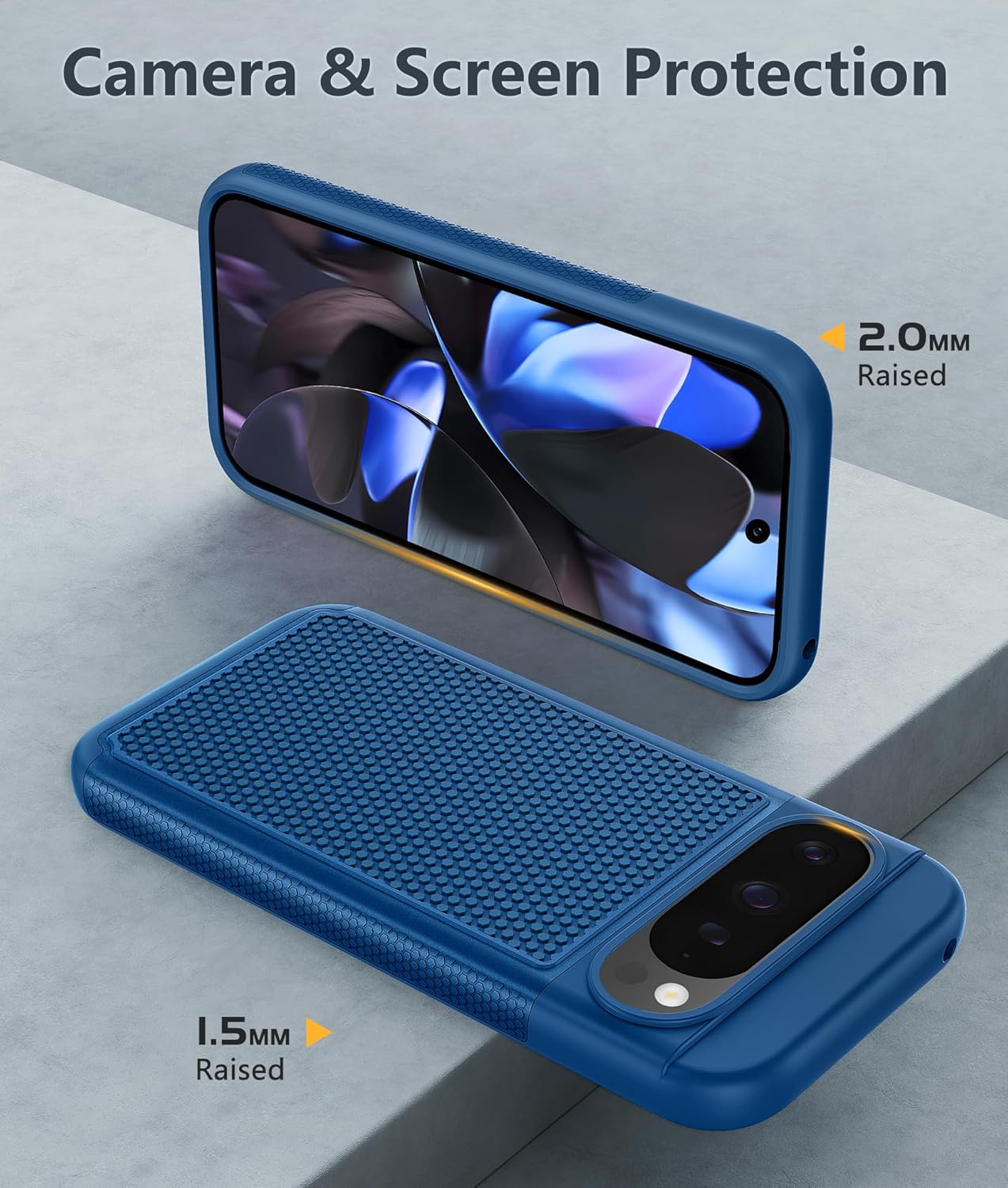 FNTCASE for Google Pixel 9-Pro-XL Case: Dual Layer Heavy Duty Protective Phonecase – Shockproof Rugged Cell Phone Cover with Non Slip Textured Back | Military Protection Tough Bumper Blue