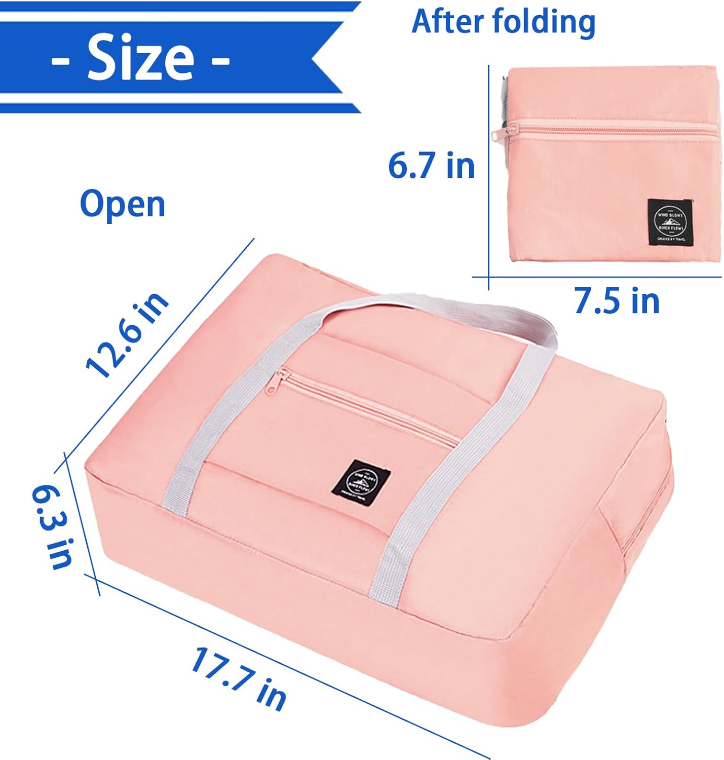 Foldable Travel Duffel Bag 2PCS Tote Carry on Luggage Bag Spirit Airlines Personal item Sports Gym Bag Water Resistant Weekender Overnight Bags for Women and Men (Green+Pink)