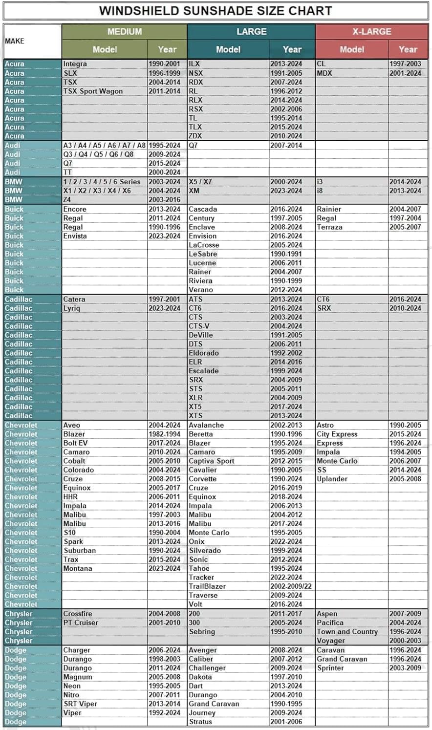 ☀ 𝗪𝗜𝗗𝗘 𝗔𝗣𝗣𝗟𝗜𝗖𝗔𝗧𝗜𝗢𝗡: KBOISE combined with most models on the market, carefully designed 3 sizes of sun shade car windshields, suitable for most household models, such as sedans, SUVs, and pickups; Please refer to 𝘁𝗵𝗲 𝗠𝗼𝗱𝗲𝗹 𝗮𝗻𝗱 𝗔𝗽𝗽𝗹𝗶𝗰𝗮𝗯𝗹𝗲 𝗦𝗶𝘇𝗲 𝗰𝗵𝗮𝗿𝘁 to get the most suitable size.Note: Slightly larger sunshade, the sunshade effect will be better