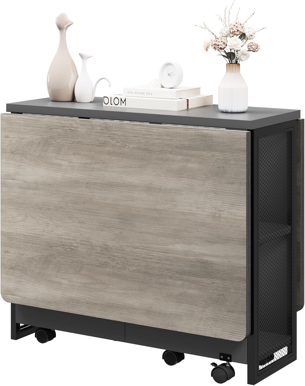【Multipurpose Table】Easily folded and extended to meet your different needs. As a dining table it perfect fit for family of 4-6 when totally extended. Just folding one tabletop, it could as an office desk placed your computer, books, camera on the tabletop, or even as a entryway table when fully folded.